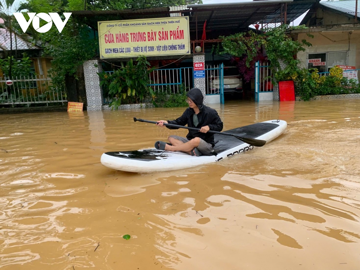 Chỉ trong vài giờ, hàng loạt tuyến đường trung tâm ở thành phố Huế như Nguyễn Huệ, Lý Thường Kiệt, Bà Triệu, Hùng Vương… bị nước nhấn chìm, mặt đường biến thành sông. Nhiều ô tô, xe máy bị ngập nửa thân, nước tràn vào nhà dân, khiến sinh hoạt của người dân đảo lộn.