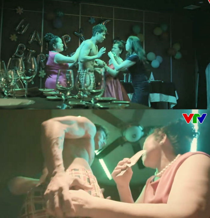 Nhưng thay vì chỉ là màn biểu diễn đơn thuần, nhân vật của Thanh Sơn lại vô tình lọt vào tầm ngắm của nhóm phụ nữ trung niên giàu có. Họ ném tiền, yêu cầu anh nhảy gợi cảm để "giải trí", rồi khi Thành không đáp ứng đúng ý, họ tiến tới giằng co, sờ soạng và lột đồ anh ngay tại chỗ.