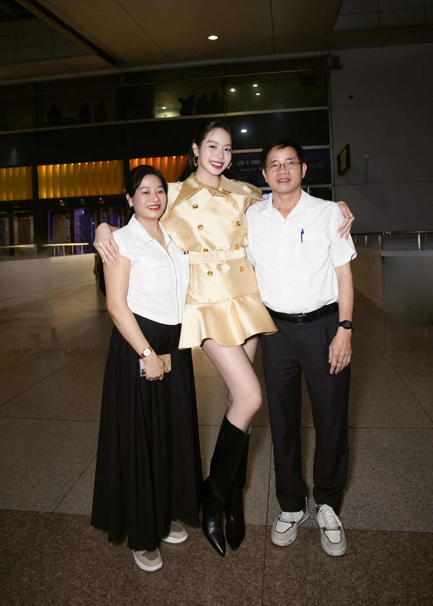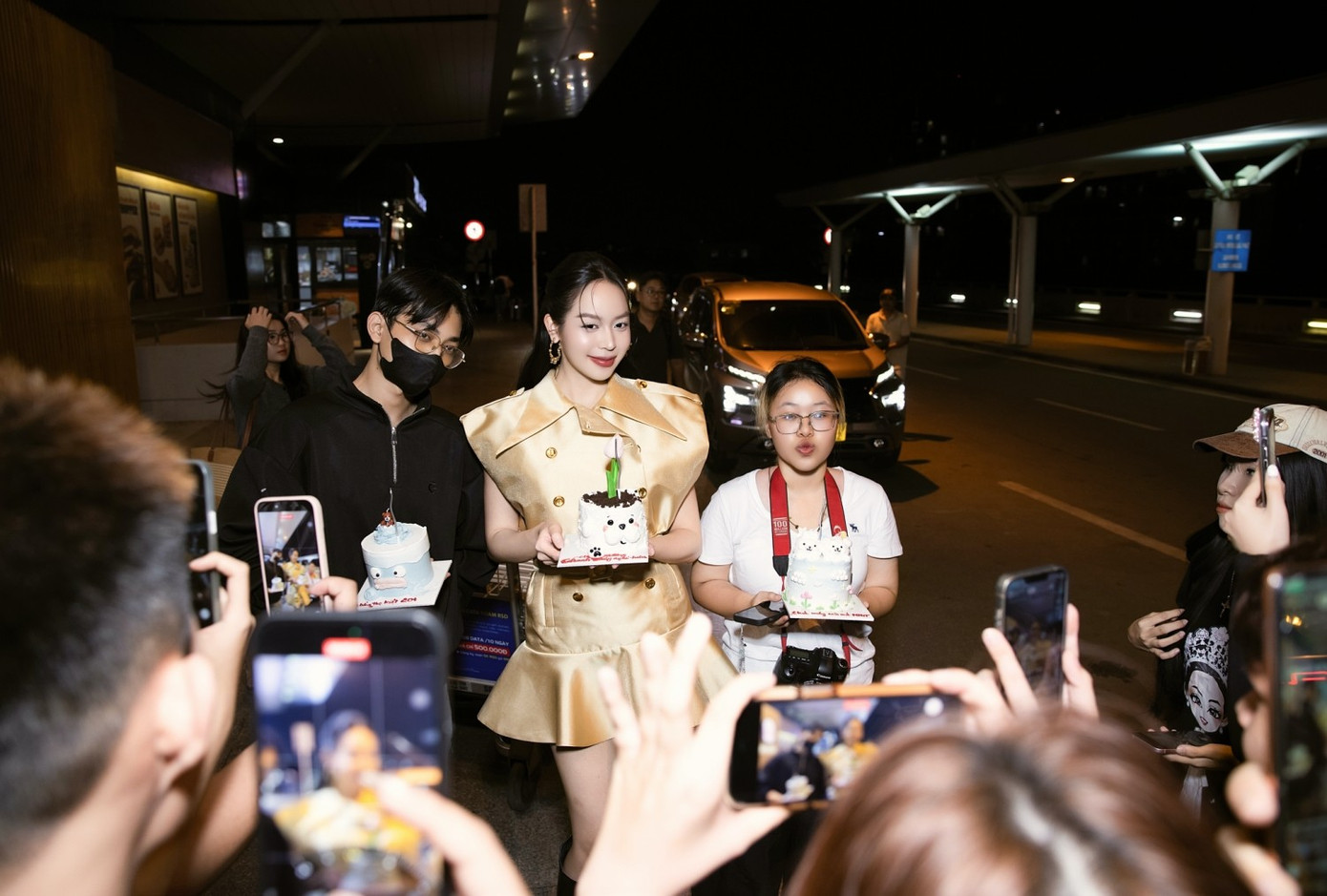 Ngoài gia đình của Thanh Thủy, ekip thân thuộc, người hâm mộ cũng có mặt tại sân bay để tiễn nàng hậu đi chuyến công tác kéo dài nhiều ngày. Cô hạnh phúc khi nhận được bánh kem chúc mừng và tình cảm nồng nhiệt từ khán giả.