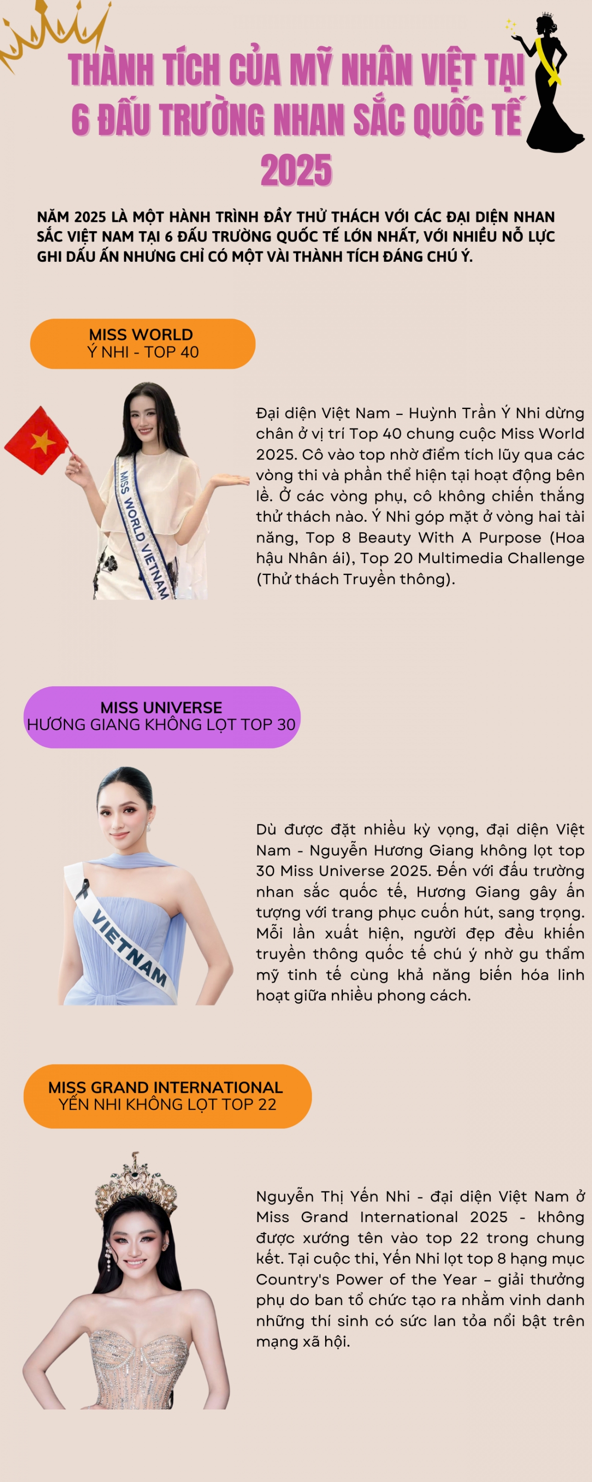 Thành tích của mỹ nhân Việt tại 6 đấu trường nhan sắc quốc tế 2025