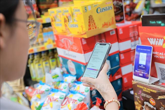 Thanh toán bằng quét mã QR ngày càng phổ biến tại các cửa hàng, siêu thị và điểm bán lẻ. Ảnh: Lê Đông/TTXVN