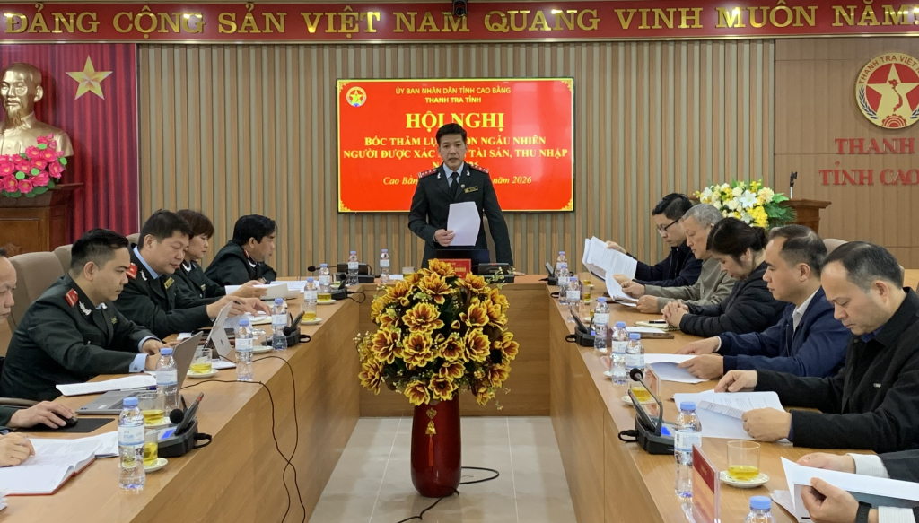 Tại hội nghị, đại diện lãnh đạo Thanh tra tỉnh đã thông qua Quyết định số 124/QĐ-UBND, ngày 30/1/2026 của Chủ tịch UBND tỉnh về việc phê duyệt nội dung Kế hoạch xác minh TSTN năm 2026; Kế hoạch số 354/KH-TTr, ngày 13/2/2026 của Thanh tra tỉnh về xác minh TSTN năm 2026. Theo đó, danh sách có 129 người có nghĩa vụ kê khai TSTN thuộc thẩm quyền kiểm soát của Thanh tra tỉnh tại 16 cơ quan, đơn vị, gồm: Sở Nội vụ; Sở Tài chính; Sở Nông nghiệp và Môi trường; Quỹ Phát triển đất; Công ty TNHH Đầu tư phát triển và Môi trường; Tổng công ty Đầu tư và Xuất nhập khẩu; UBND các xã: Quang Hán, Bạch Đằng, Nguyễn Huệ, Quảng Uyên, Canh Tân, Đông Khê, Quang Trung, Trùng Khánh, Đàm Thủy và Thông Nông.