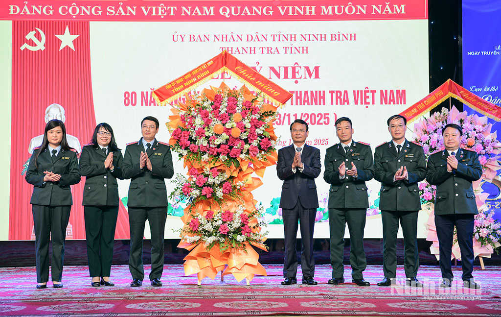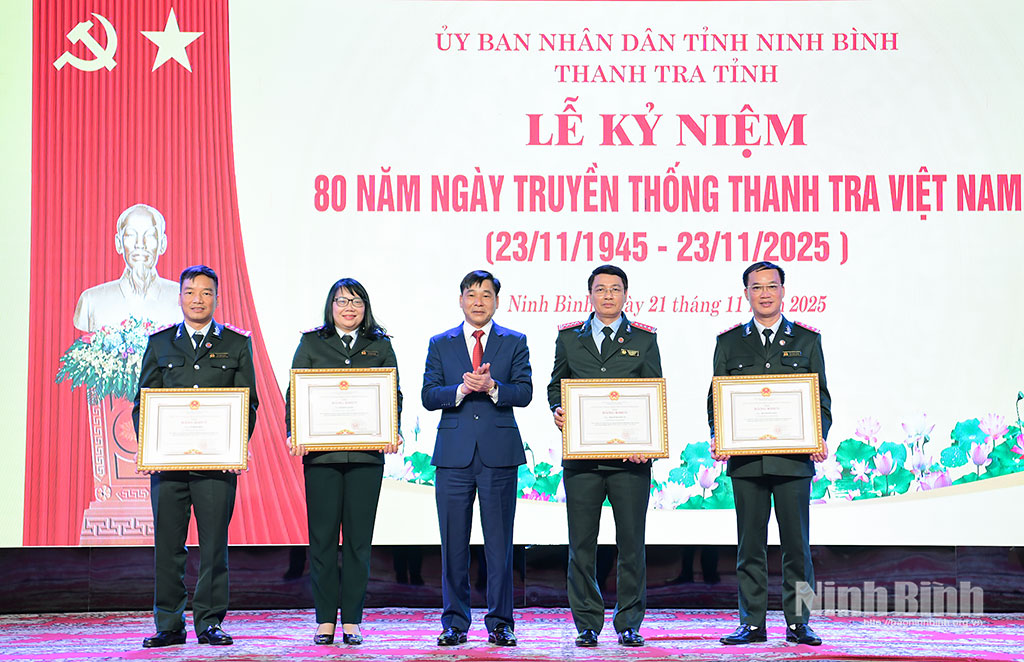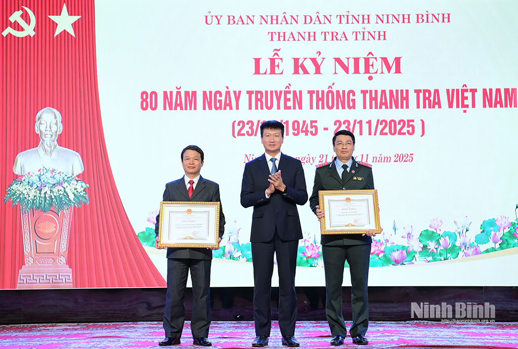 Nhân dịp này, đồng chí Đặng Xuân Phong, Ủy viên Trung ương Đảng, Bí thư Tỉnh ủy, Trưởng Đoàn đại biểu Quốc hội tỉnh và các đồng chí lãnh đạo tỉnh đã tặng Thanh tra tỉnh lẵng hoa tươi thắm. Đồng chí Trần Huy Tuấn, Phó Bí thư Tỉnh ủy, Chủ tịch UBND tỉnh trao Bằng khen của UBND tỉnh cho 15 tập thể và 20 cá nhân có thành tích tiêu biểu trong hoạt động của ngành Thanh tra.