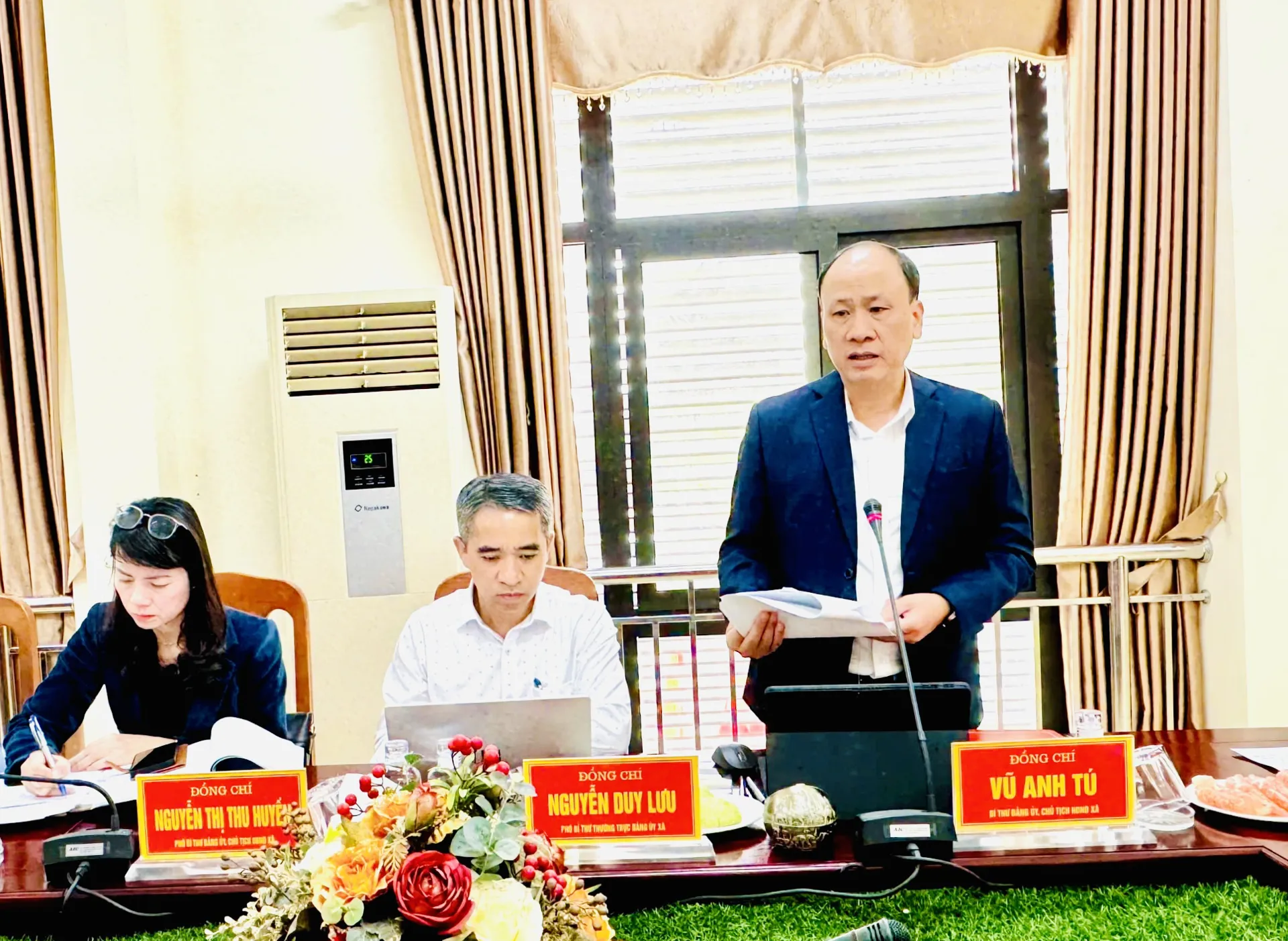 Bí thư Đảng ủy, Chủ tịch HĐND xã Nam Phù Vũ Anh Tú báo cáo kết quả thực hiện nhiệm vụ của xã.
