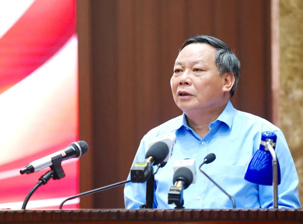 Phó Bí thư Thường trực Thành ủy Hà Nội Nguyễn Văn Phong phát biểu tại họp báo.