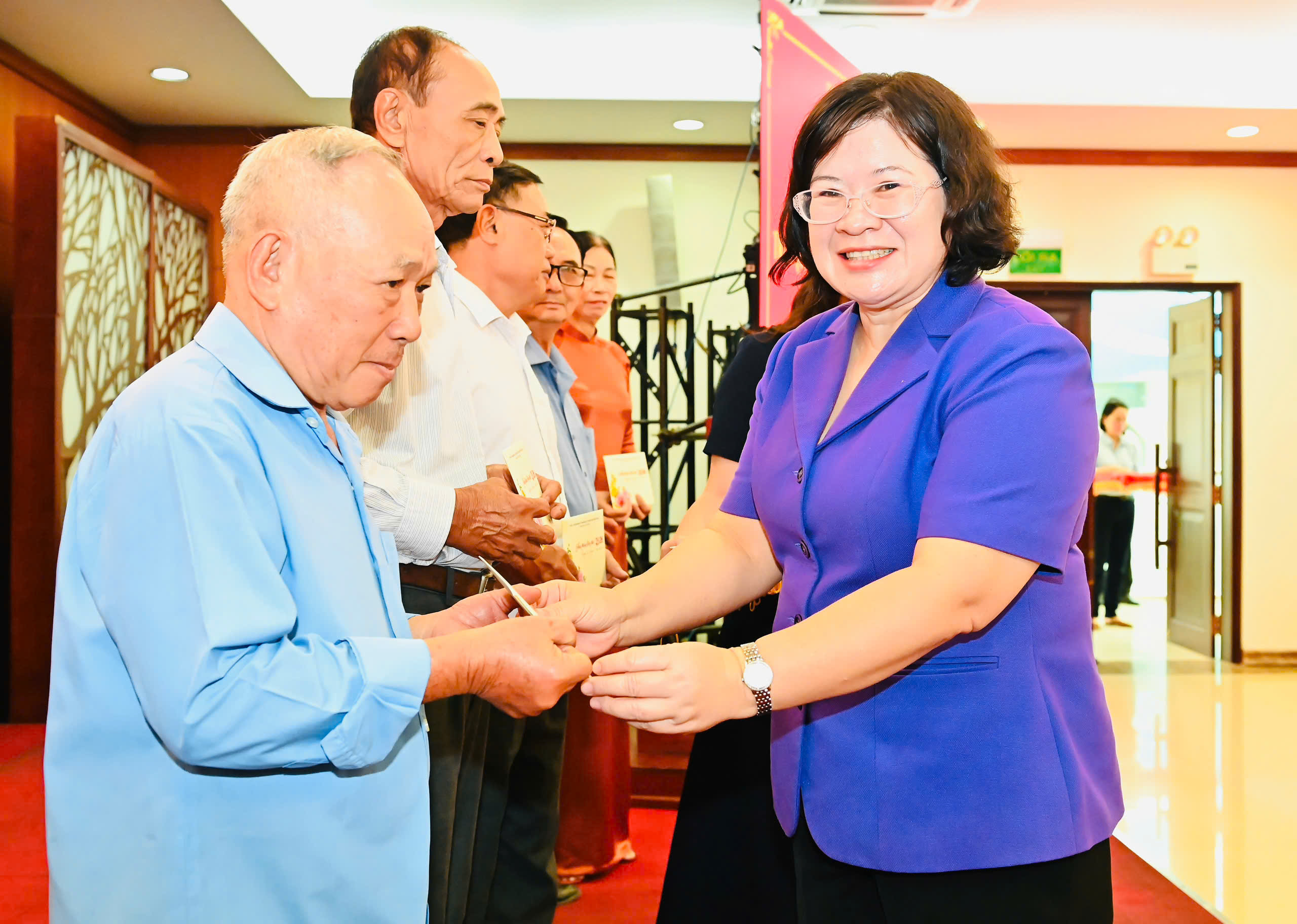 Đồng chí Văn Thị Bạch Tuyết, Phó Bí thư Thành ủy TPHCM dự và trao quà đến các đồng chí bí thư chi bộ khu phố.