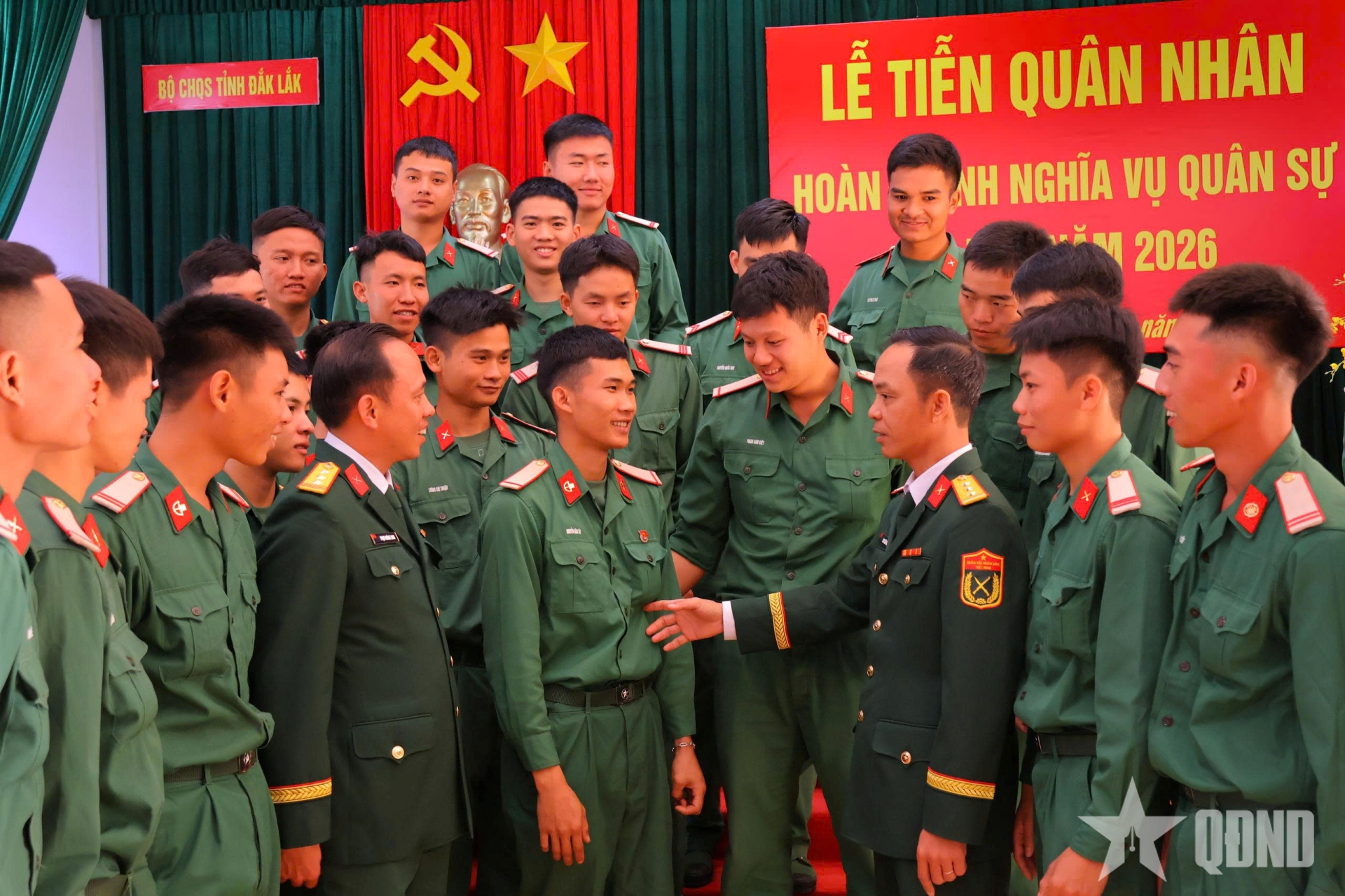 Chỉ huy Trung đoàn Bộ binh 584 (Bộ CHQS tỉnh Đắk Lắk) dặn dò các quân nhân chuẩn bị xuất ngũ.