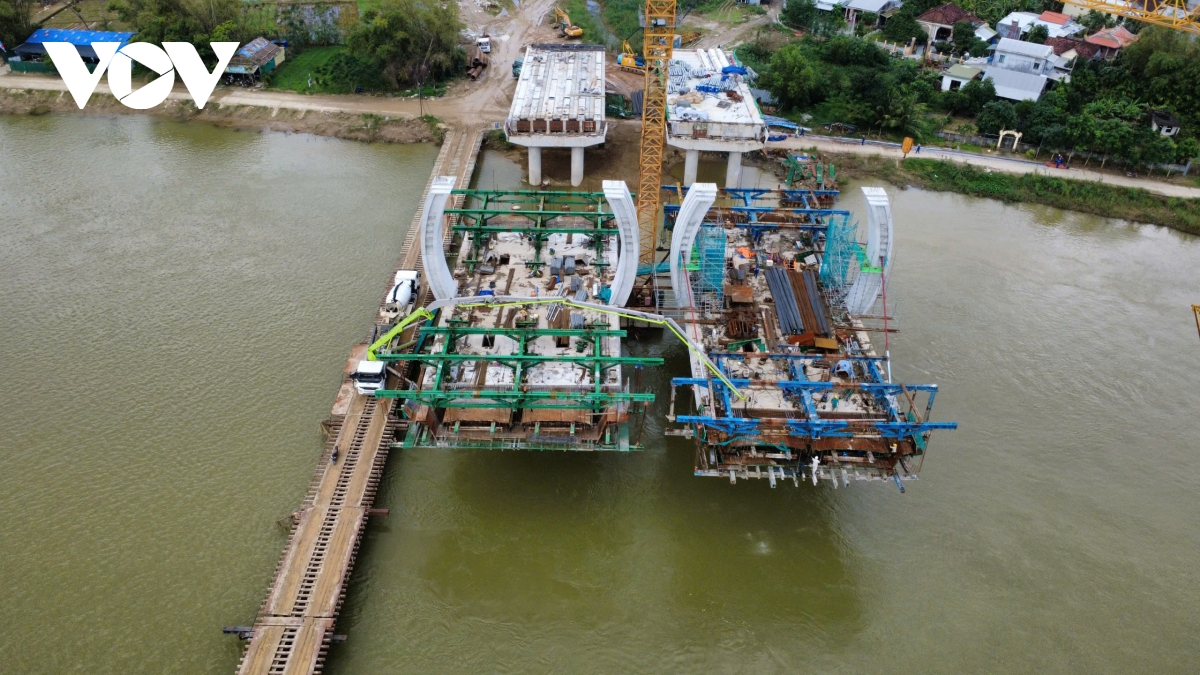 Dự kiến tháng 12/2025, nhà thầu sẽ hợp long cầu số 2, dự án đường Hoàng Sa - Dốc Sỏi.