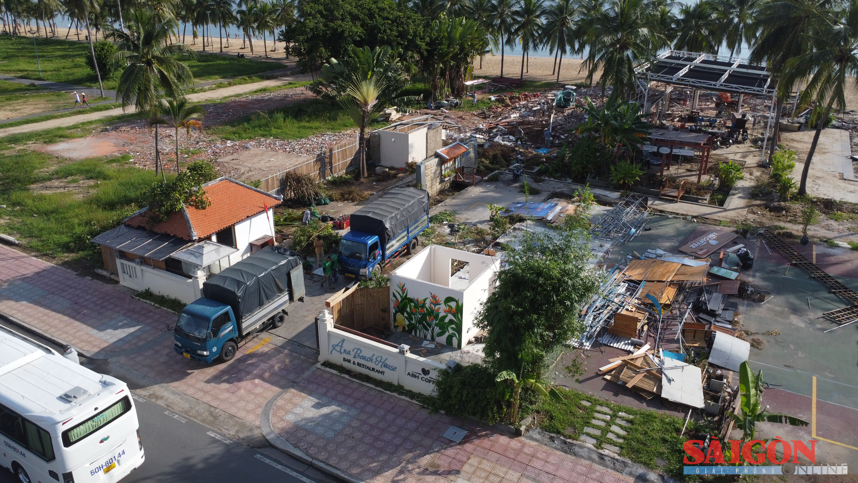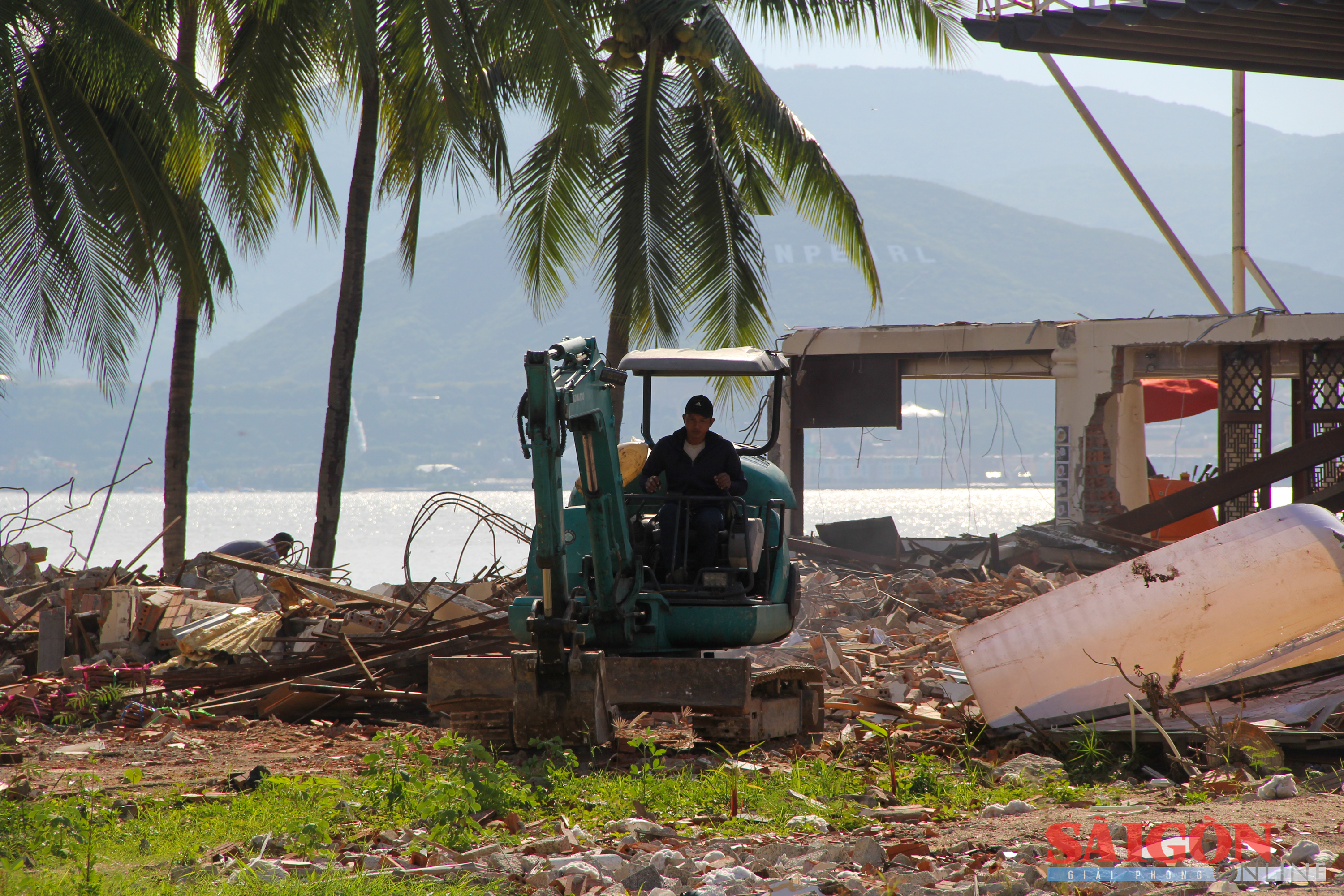 Ngày 11-10, nhóm công nhân cùng máy móc đang tháo dỡ các hạng mục cuối cùng của dự án Evason Ana Mandara, phía Đông đường Trần Phú (phường Nha Trang) do Công ty TNHH Sovico Khánh Hòa quản lý.