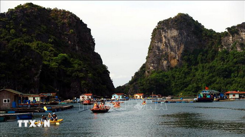Du khách khám phá làng chài Vung Viêng trên Vịnh Hạ Long. (Ảnh: Đức Hiếu/TTXVN)