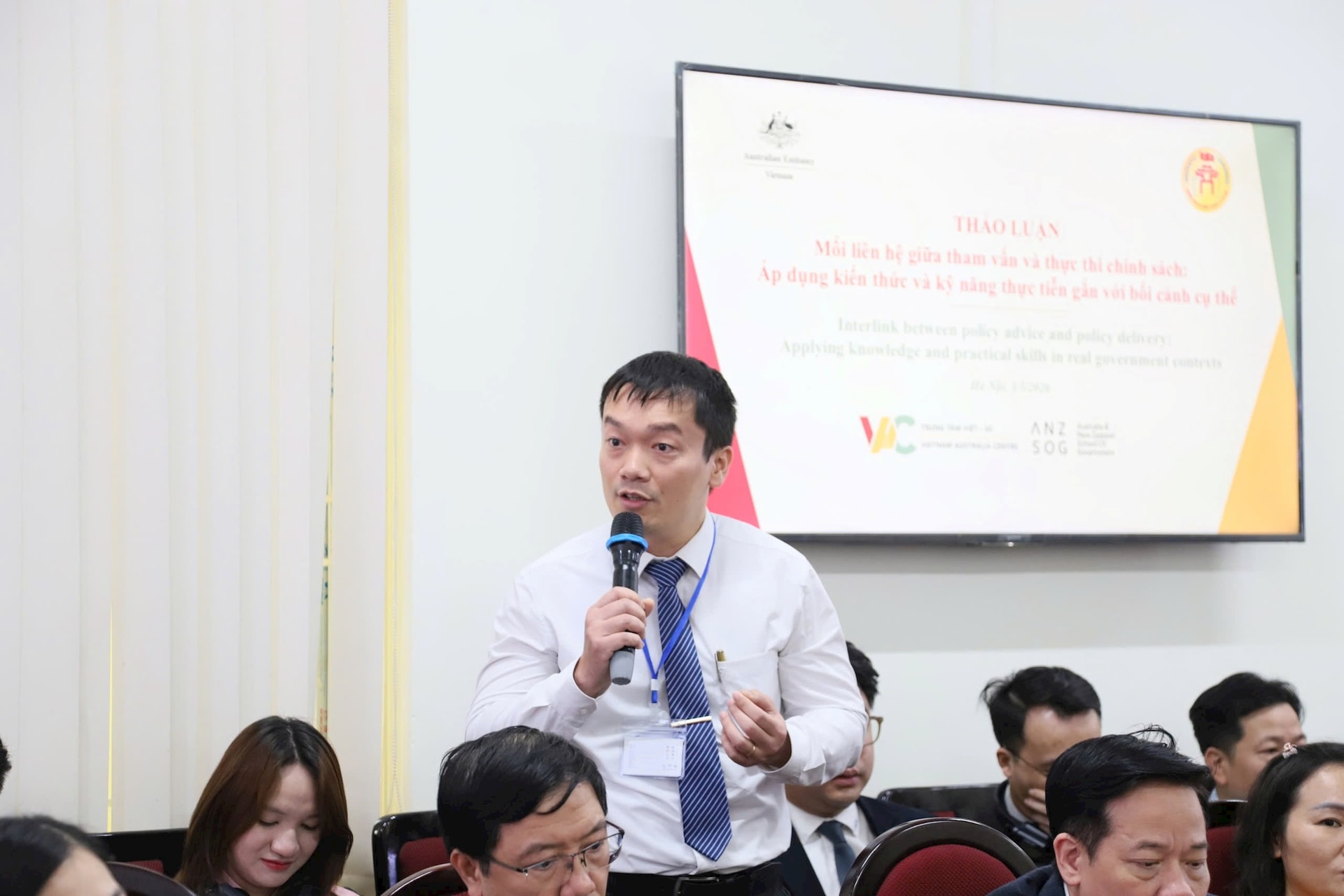 Tham dự tọa đàm có bà Estrellita Boskovic, Bí thư thứ nhất Đại sứ quán Australia tại Việt Nam; bà Kim Cleary, Giám đốc Quốc tế của Trung tâm Việt - Úc (VAC); Tiến sĩ Anneke Schmider, Giám đốc Chương trình các sáng kiến toàn cầu, Trường Đào tạo cán bộ công Australia và New Zealand; bà Annmarie Carroll, Cố vấn cấp cao Chương trình; TS Bùi Phương Đình, Phó Giám đốc Học viện Hành chính và Quản trị công; PGS.TS Phạm Minh Anh, Bí thư Đảng ủy, Hiệu trưởng Trường Đào tạo cán bộ Lê Hồng Phong.