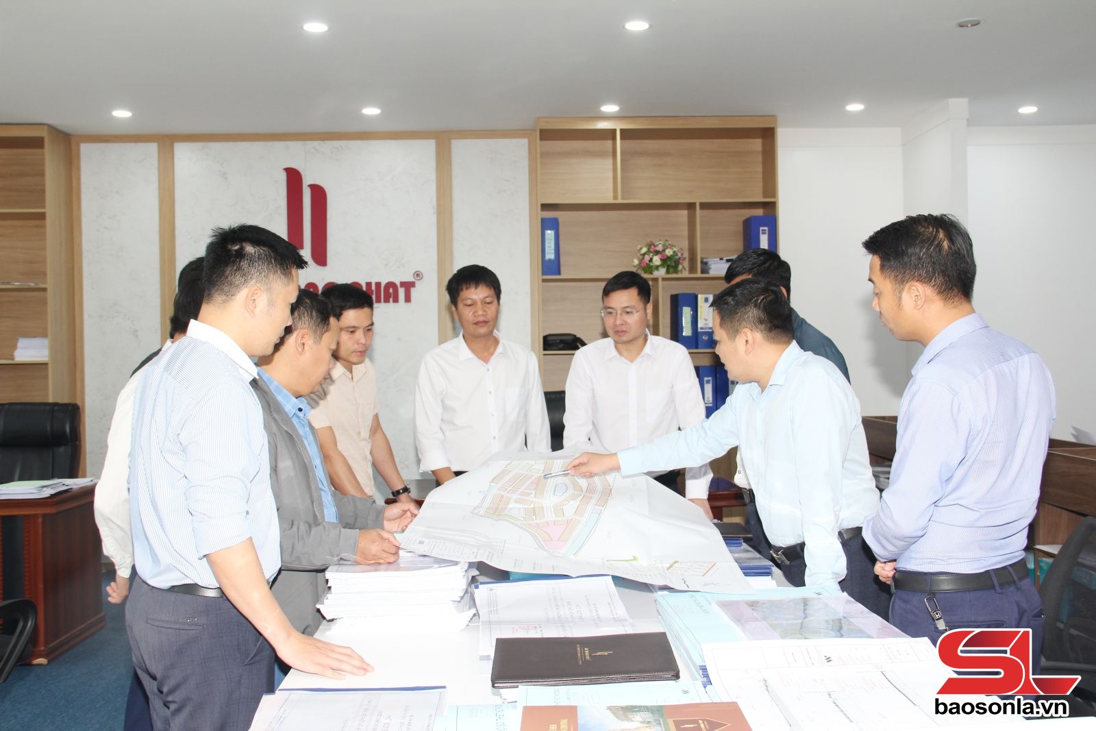 Cán bộ, kỹ thuật Công ty CP NTF Hoàng Phát xem bản đồ quy hoạch.