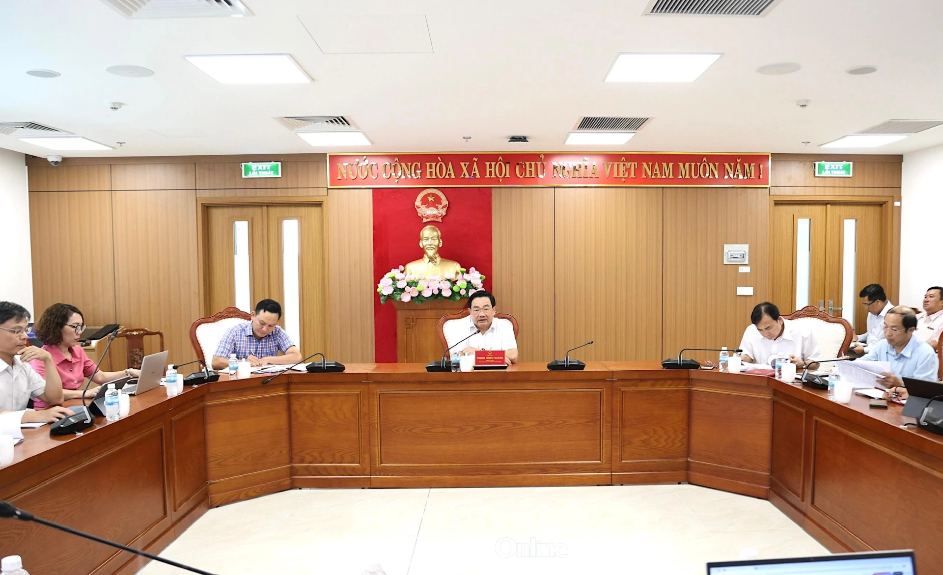 Phó Chủ tịch UBND tỉnh Trịnh Minh Hoàng chủ trì cuộc họp.