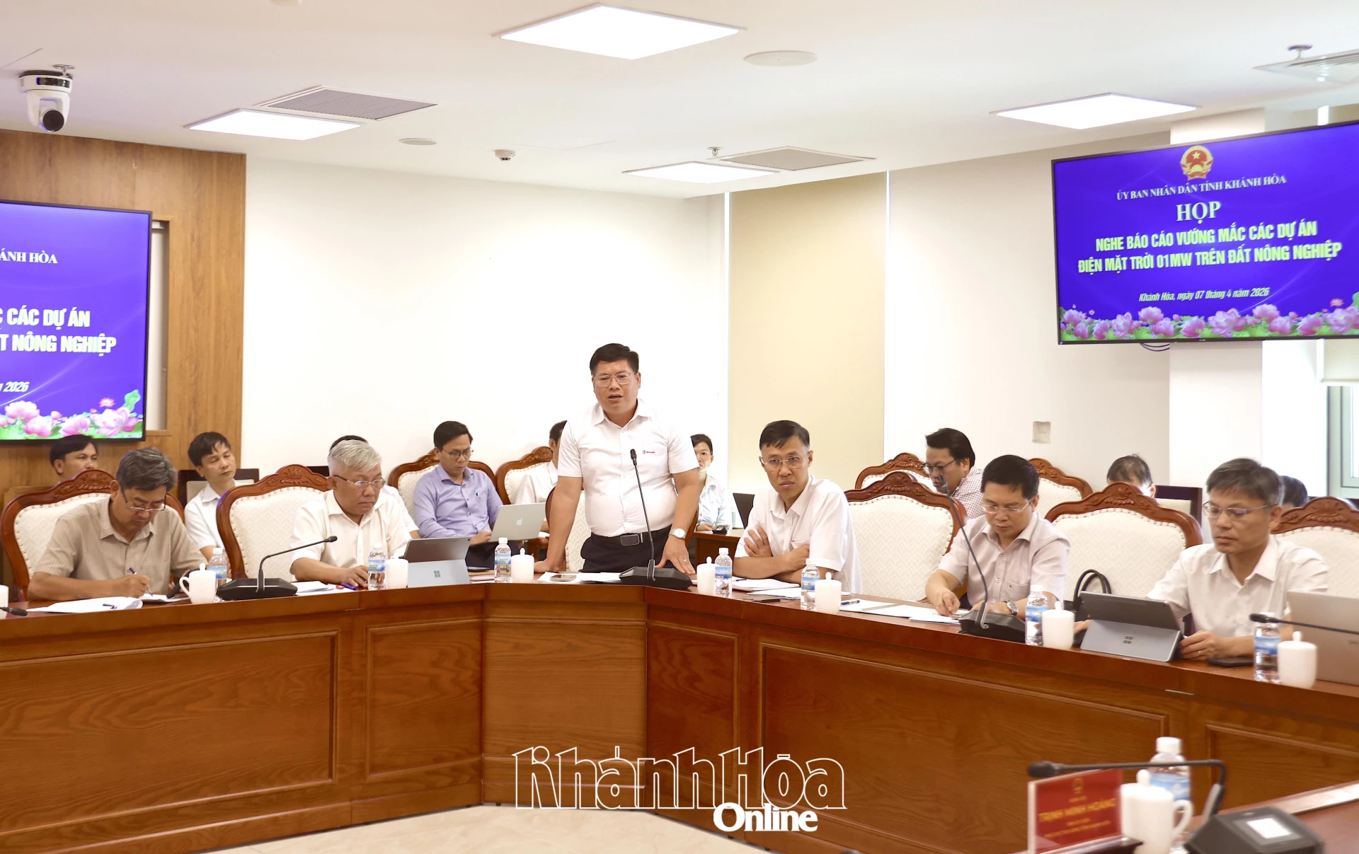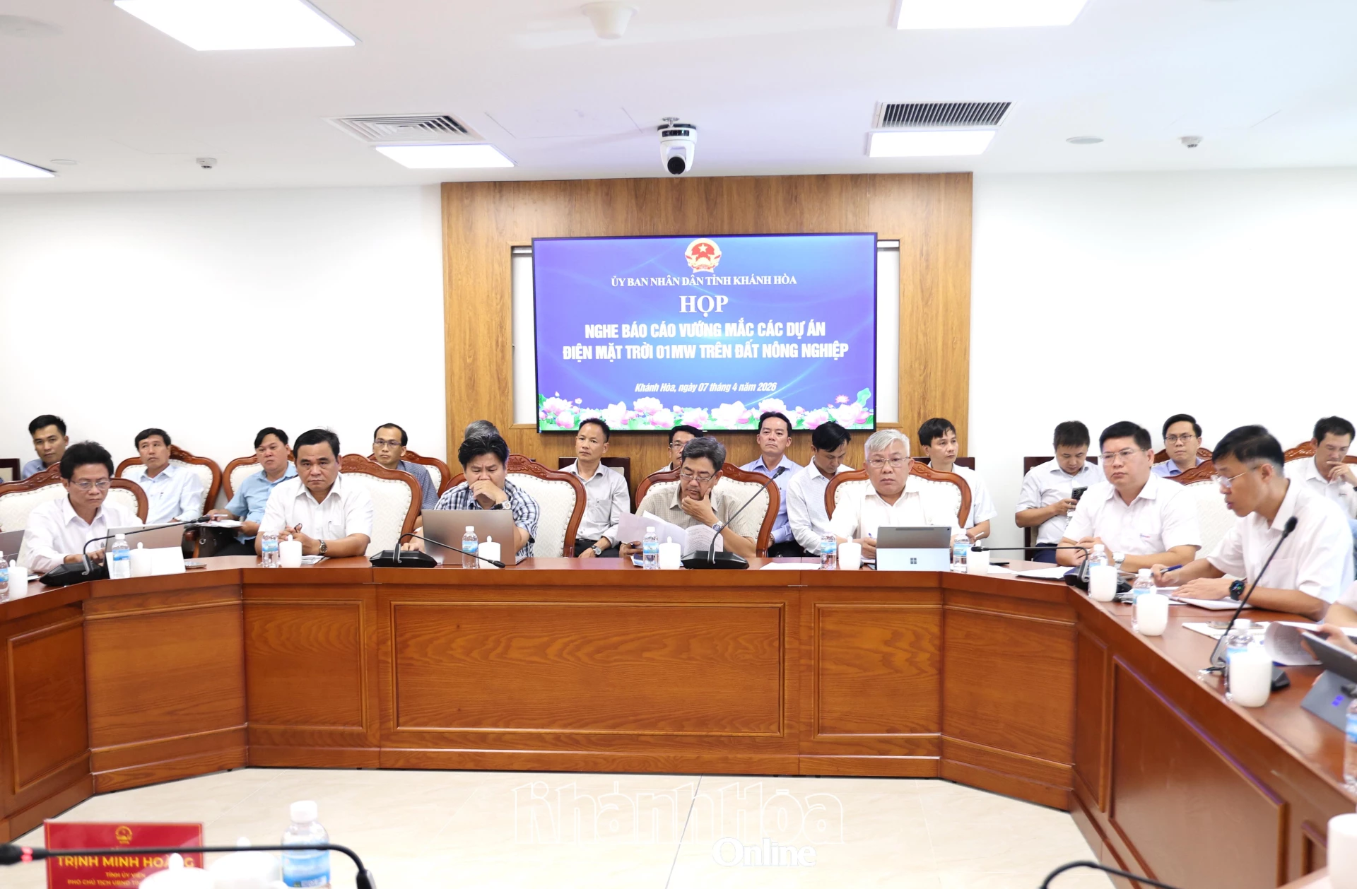 Chiều 7-4, đồng chí Trịnh Minh Hoàng - Phó Chủ tịch UBND tỉnh Khánh Hòa chủ trì cuộc họp với các sở, ngành, địa phương để giải quyết vướng mắc liên quan đến các dự án điện mặt trời dưới 1MW trên đất nông nghiệp.