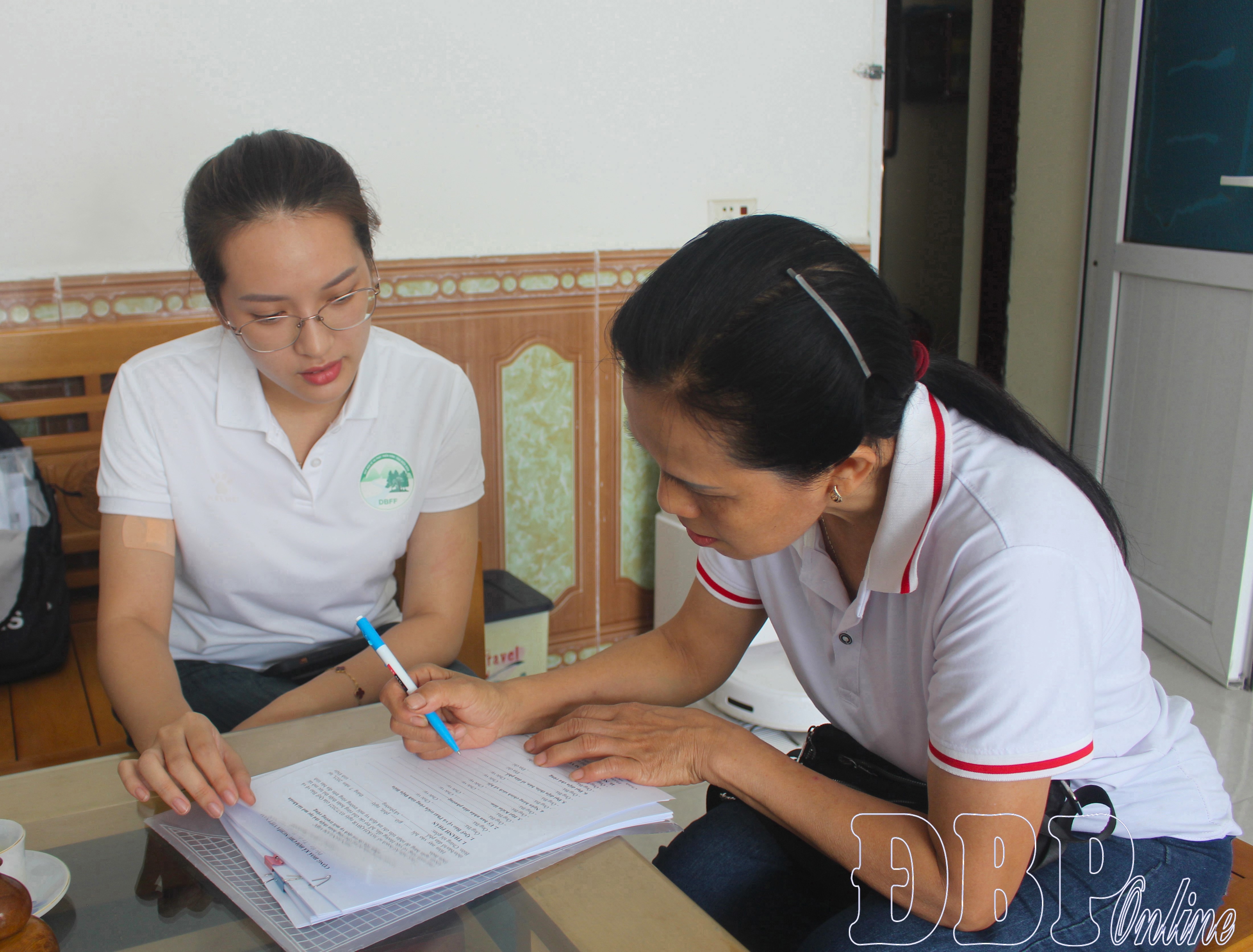Cán bộ Quỹ Bảo vệ và Phát triển rừng tỉnh hướng dẫn chủ rừng mở tài khoản ngân hàng để nhận tiền DVMTR.