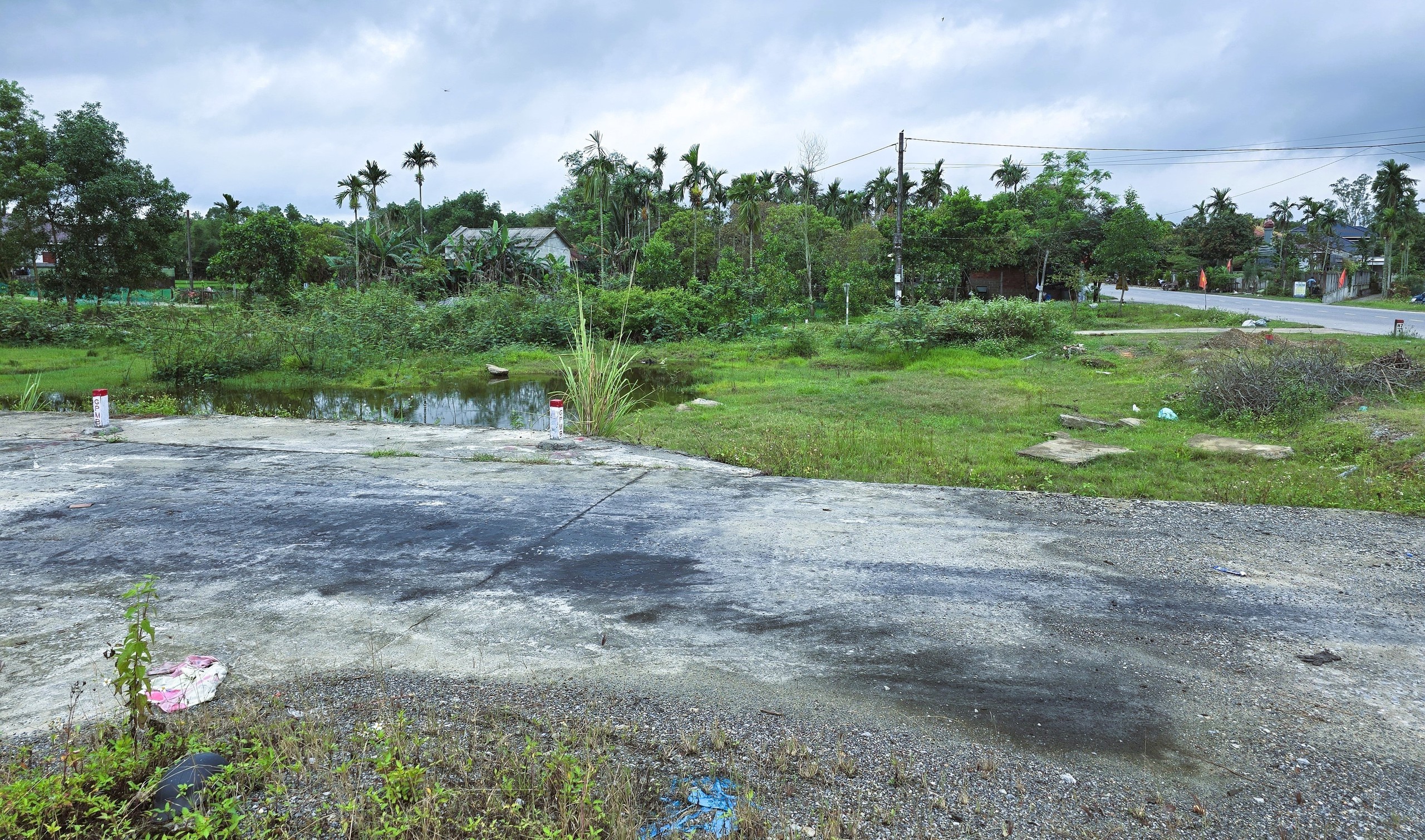 Cọc mốc giải phóng mặt bằng trên đoạn tuyến từ cảng Mỹ Thủy lên QL1 qua xã Diên Sanh.