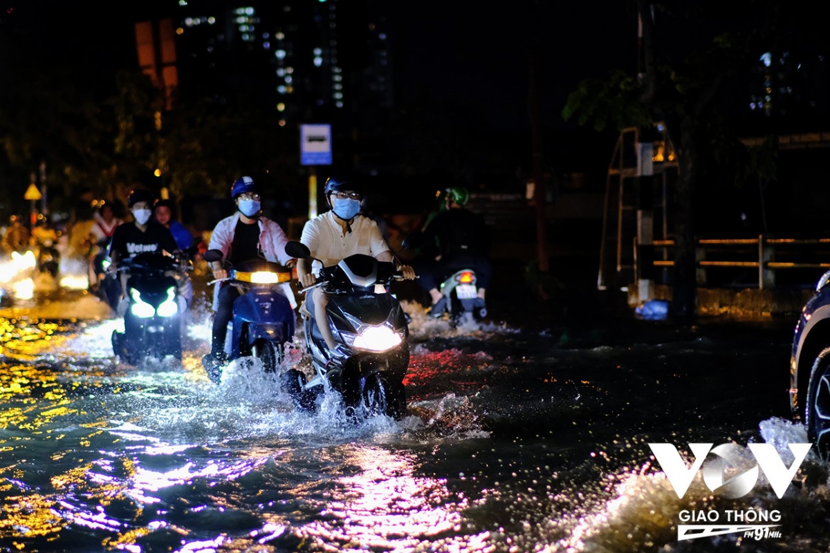 Liệu những nỗ lực kép này có đủ để đưa công trình trọng điểm về đích, giải quyết dứt điểm bài toán ngập úng kinh niên cho thành phố? Trận mưa lớn kéo dài từ chiều đến tối 8/10, kết hợp triều cường khiến nhiều tuyến đường ở trung tâm TP.HCM bị ngập sâu. Tại đường Trần Xuân Soạn, quận 7, dòng nước đen ngòm, đục ngầu cuộn lên từ hai bên bờ kênh, nuốt chửng mặt đường. Giờ tan tầm, hàng ngàn người dân gồng mình, bì bõm dắt xe chết máy qua những đoạn ngập sâu quá bánh xe.