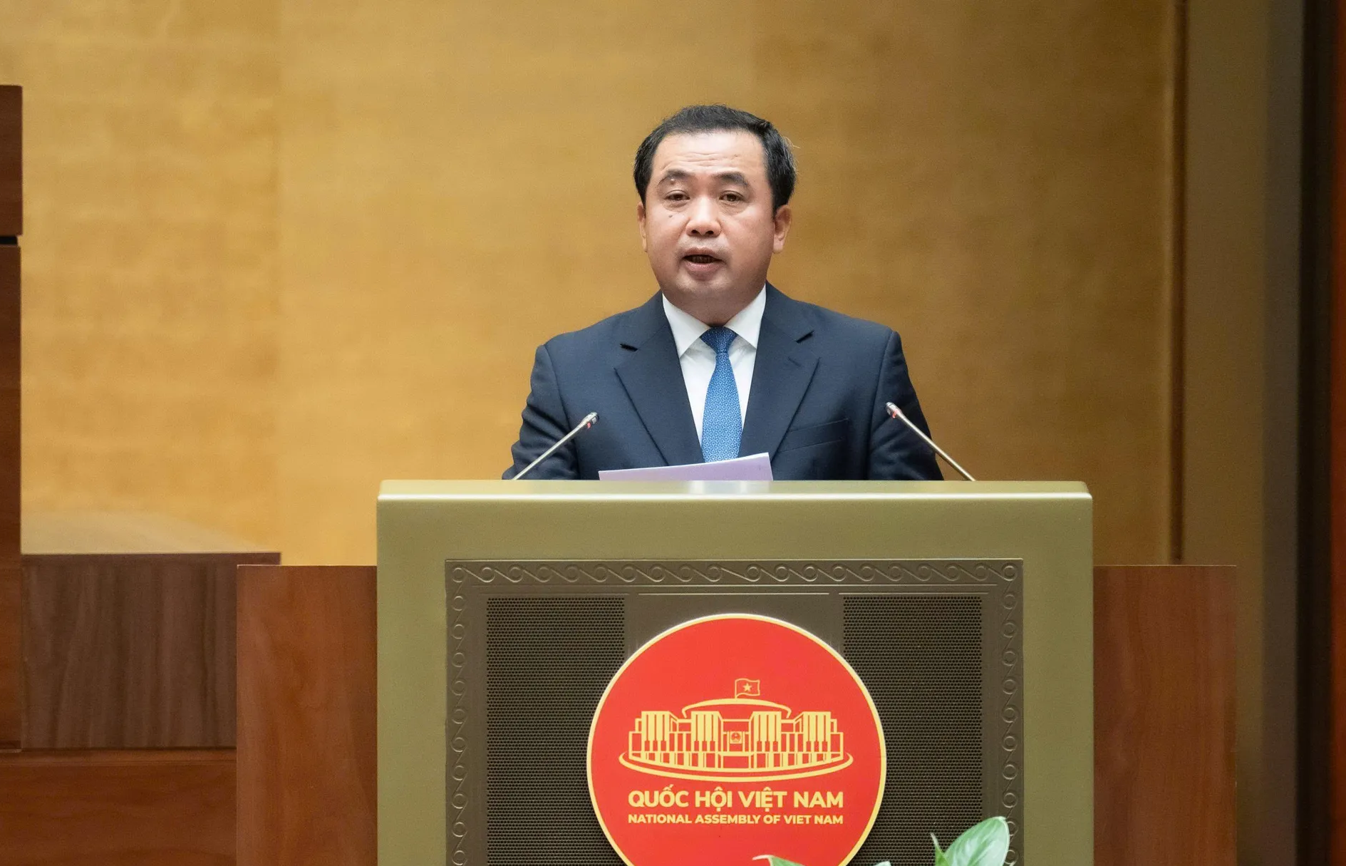 Bộ trưởng Bộ Nông nghiệp và Môi trường Trần Đức Thắng trình bày Tờ trình. Ảnh: Quochoi.vn