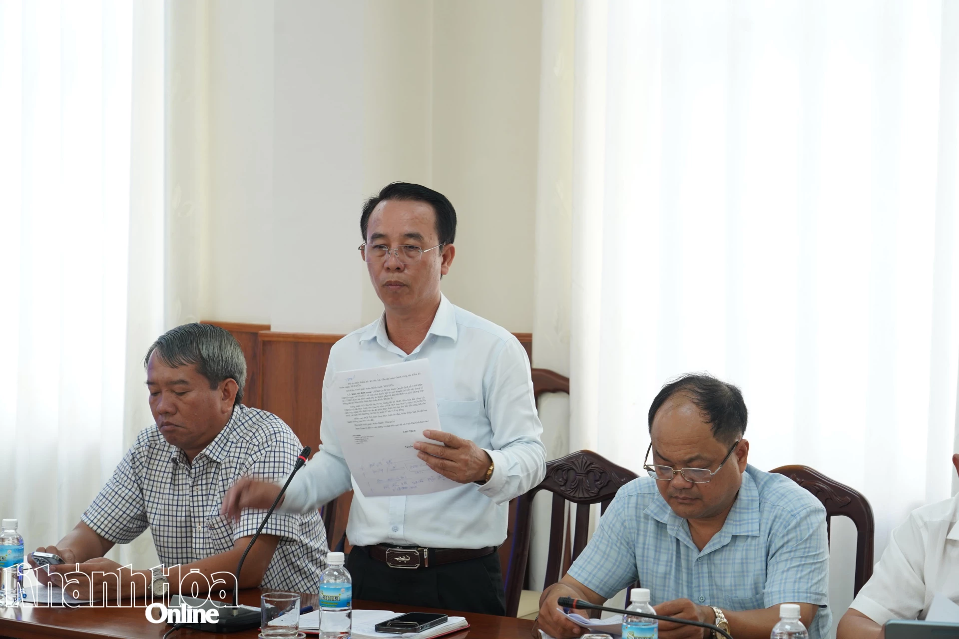 Lãnh đạo xã Vĩnh Hải báo cáo tại cuộc họp.