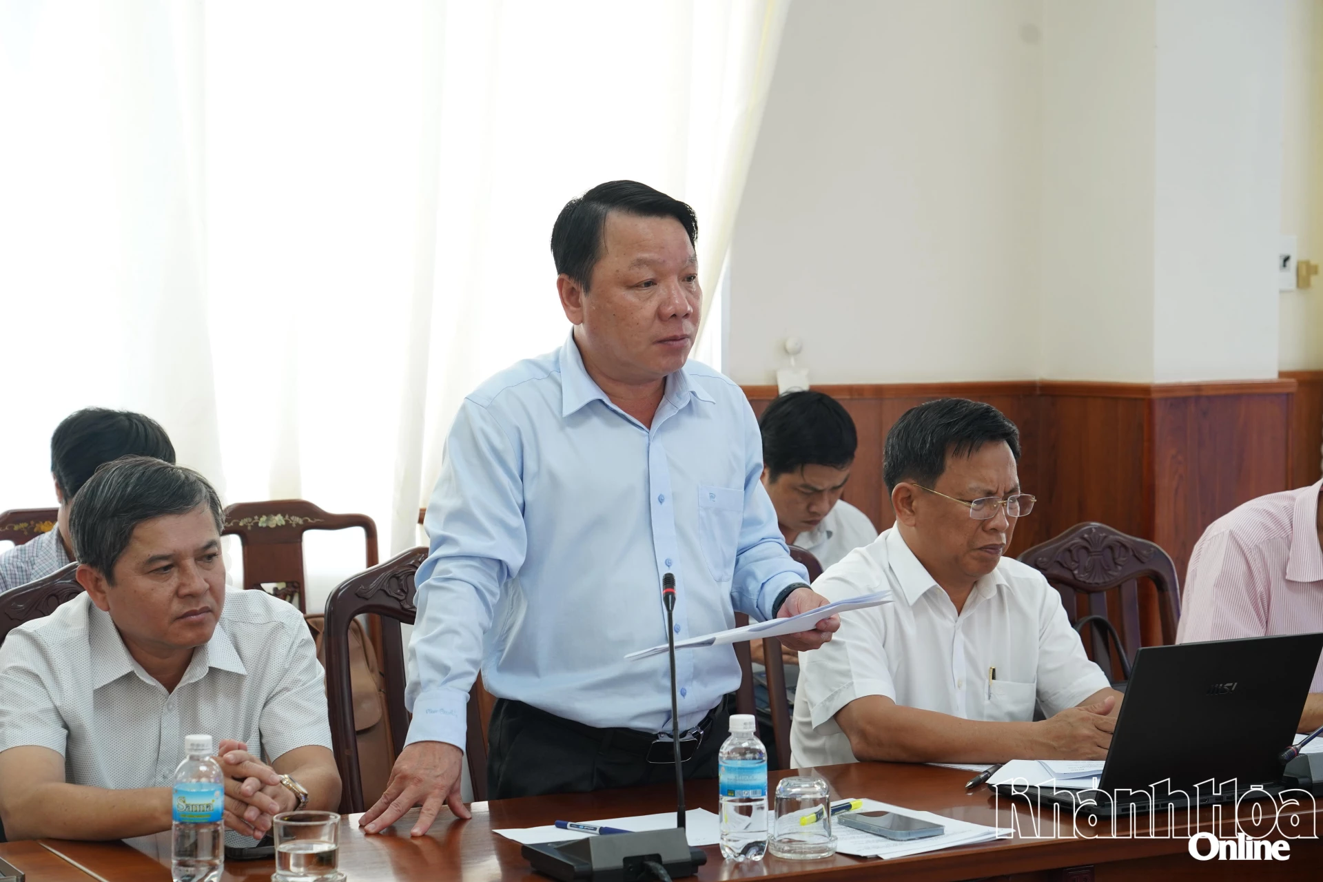 Lãnh đạo xã Phước Dinh báo cáo tại cuộc họp.