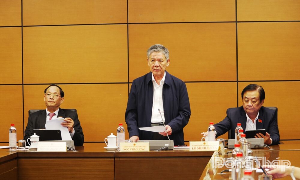 Đồng chí Ngô Chí Cường, Ủy viên Ban Chấp hành Trung ương Đảng, Bí thư Tỉnh ủy, Trưởng Đoàn đại biểu Quốc hội tỉnh Đồng Tháp điều hành thảo luận tại Tổ.