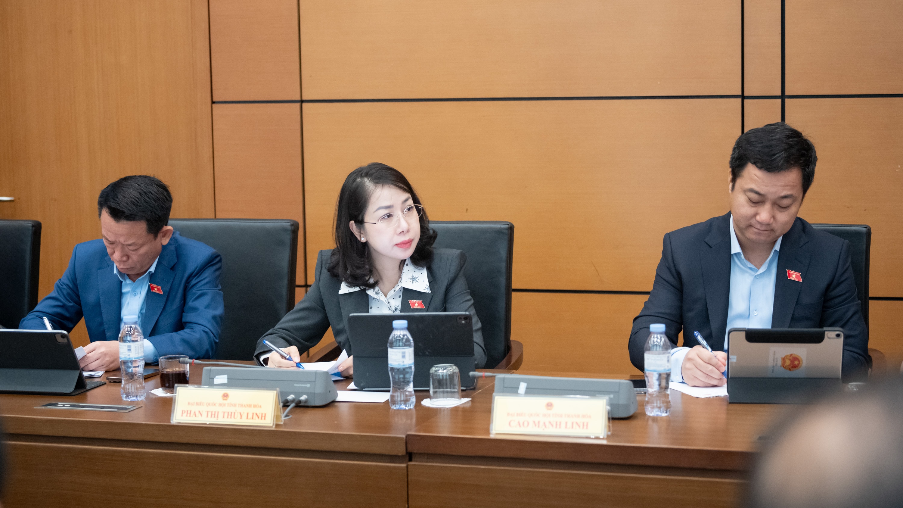 Các ĐBQH tỉnh Thanh Hóa tham gia thảo luận tại tổ. Ảnh: Phạm Thắng