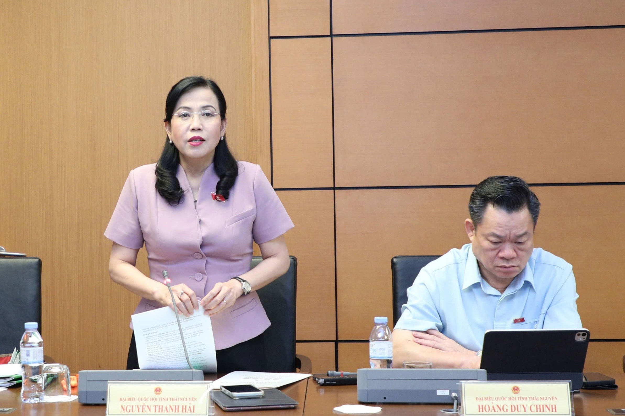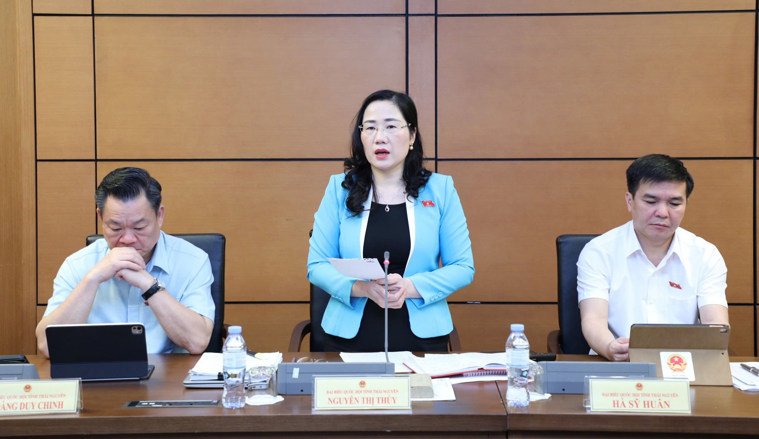 Phó Chủ nhiệm Ủy ban Pháp luật và Tư pháp Nguyễn Thị Thủy - ĐBQH tỉnh Thái Nguyên, phát biểu tại tổ 6