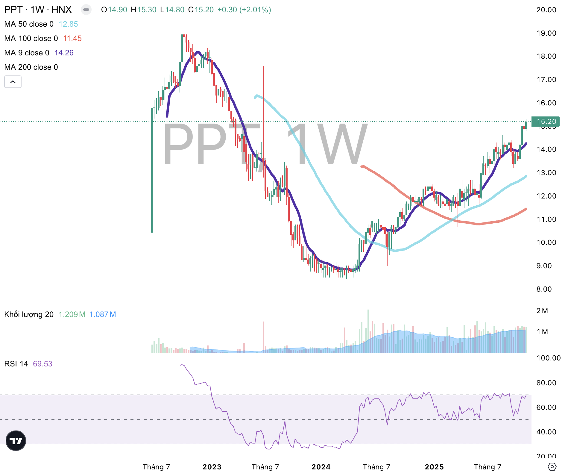 Đóng cửa phiên giao dịch ngày 14/11, cổ phiếu PPT tăng 100 đồng lên 15.200 đồng/cổ phiếu.