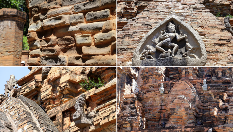Bước lên tầng cao nhất, ngọn tháp sừng sững 23 mét sẽ hiện ra trước mắt bạn, tráng lệ, hùng vĩ. Tháp xây bằng gạch, khít mạch, không dùng bất kỳ một thứ chất kết dính nào hết. Lòng tháp rỗng tới đỉnh, cửa tháp quay về hướng Đông. Mặt ngoài thân tháp có nhiều gờ, trụ, đỉnh các trụ thường đặt gạch trang trí hoa văn hình vòm tháp. Ngoài ra, thân tháp còn có nhiều tượng và phù điêu bằng đất nung, trong đó có hình các tiên nữ, các loài thú như nai, ngỗng vàng, sư tử và đặc biệt hơn cả là tượng thần Ponagar, thần Tenexa.