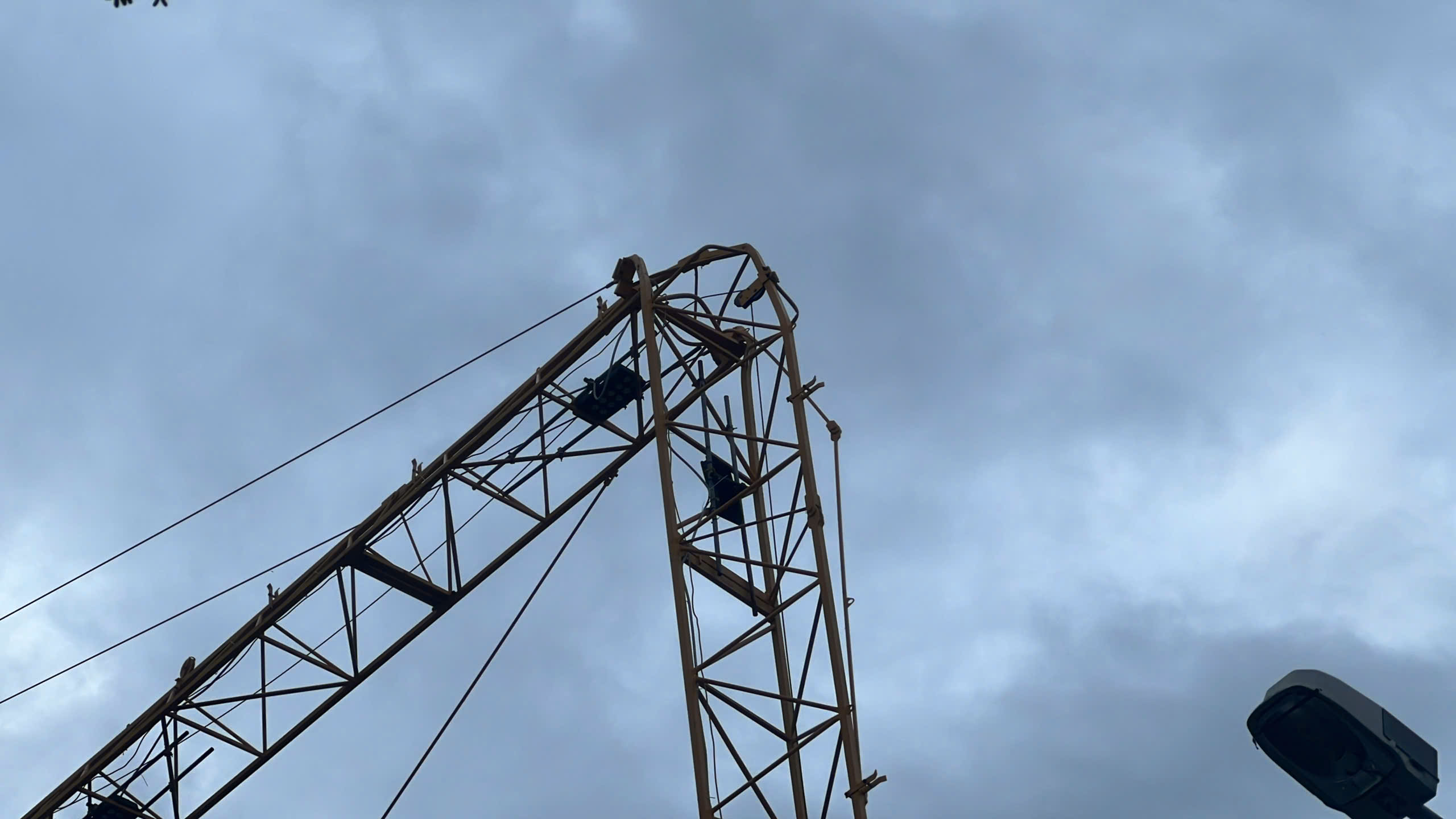 Tháp cẩu cao hàng chục mét bị gãy ngang