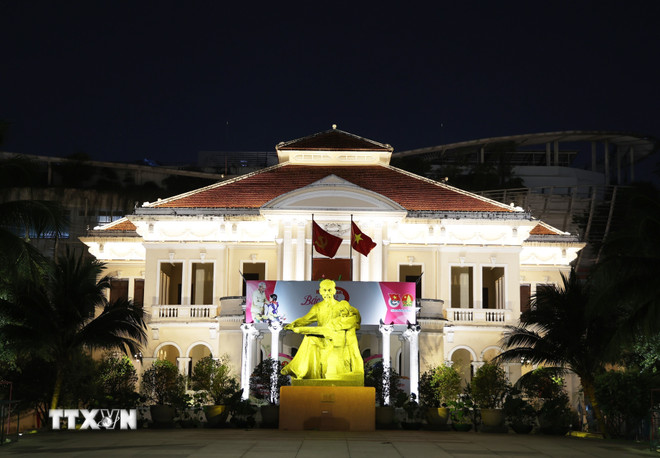 Hệ thống chiếu sáng mỹ thuật Nhà Thiếu nhi Thành phố Hồ Chí Minh. (Ảnh: Hồng Đạt/TTXVN)