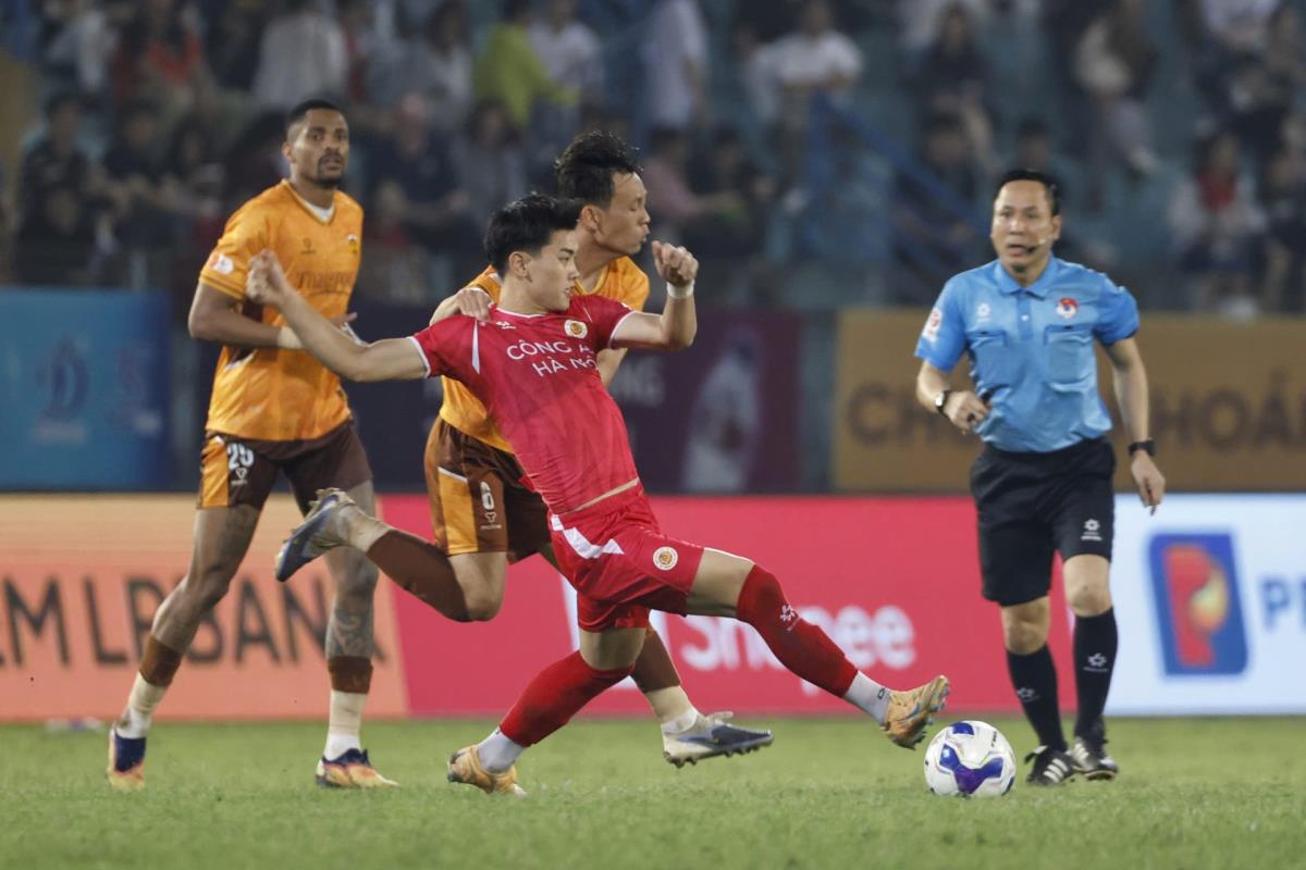 Đình Bắc (áo sẫm) và Công an Hà Nội đang băng băng về đích.