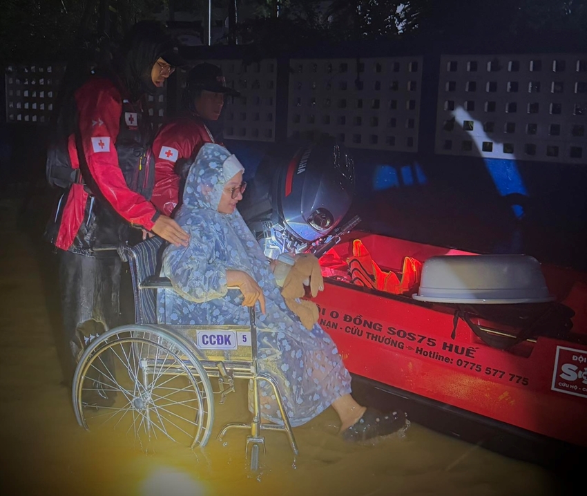 Ngay cả Bệnh viện Trung ương Huế - nơi người dân Huế bảo rằng khá cao, yên tâm, ai có xe ô tô cứ đem vào đó đậu nhờ vẫn chìm trong biển nước. Nước tràn vào sân bệnh viện, rồi dâng vào tận trong các phòng bệnh. Hình ảnh các bác sĩ, y tá, hộ lý và người nhà bệnh nhân cùng dìu đẩy bệnh nhân trông thật xót xa. Và rồi, các chiến sĩ lực lượng vũ trang xuất hiện, không thể ấm lòng hơn!