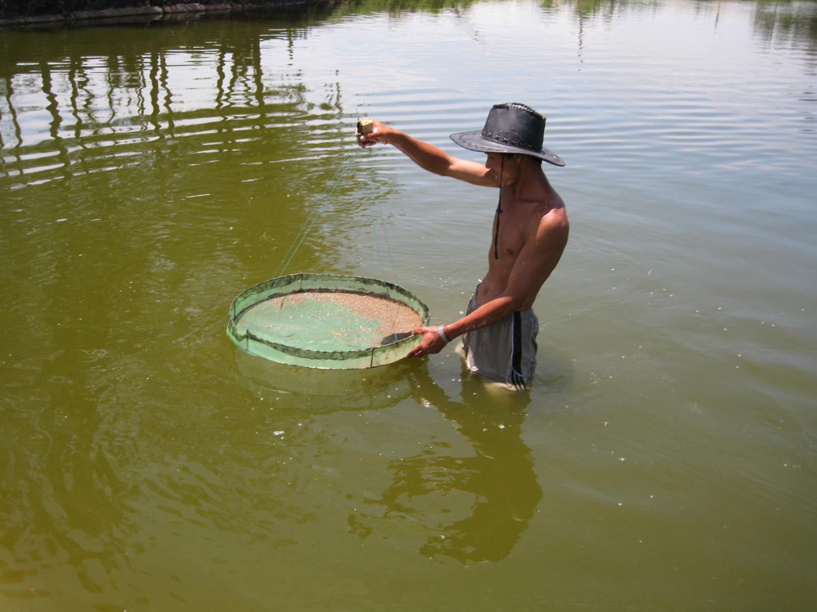 Người nuôi tôm ở Tam Xuân. Ảnh: VĂN PHIN