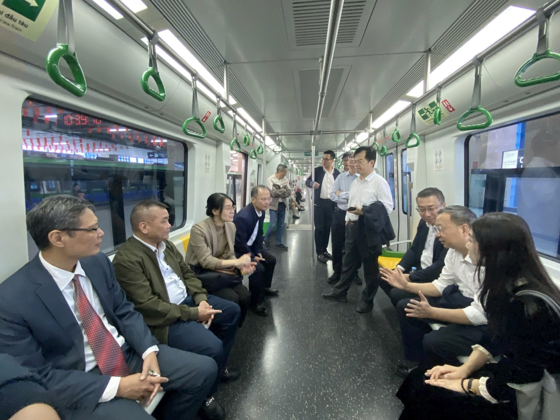* Sáng cùng ngày, đại diện Liên hiệp các tổ chức hữu nghị thành phố Hà Nội đã đưa đoàn công tác thành phố Quảng Châu tham quan tuyến đường sắt đô thị Cát Linh - Hà Đông.