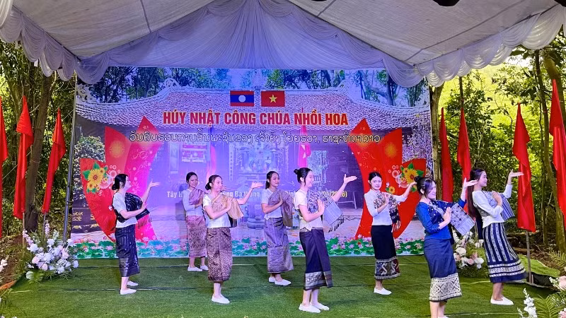 Tiết mục giao lưu văn hóa do các sinh viên Lào đang học tập tại tỉnh Ninh Bình biểu diễn.