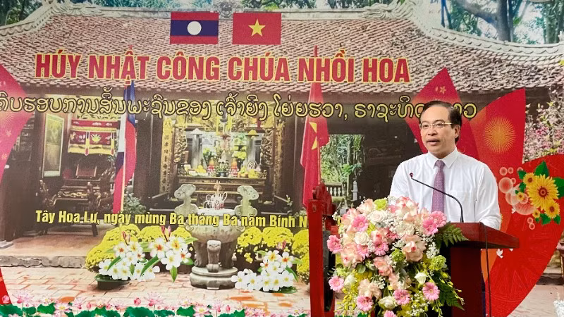 Tại buổi lễ, thay mặt Đảng, Nhà nước và nhân dân Lào, bà Khamphao Ernthavanh, Đại sứ đặc mệnh toàn quyền nước Cộng hòa dân chủ nhân dân Lào tại Việt Nam bày tỏ lòng cảm ơn sâu sắc tới chính quyền tỉnh Ninh Bình, đặc biệt là nhân dân phường Tây Hoa Lư đã gìn giữ, bảo tồn và tổ chức lễ tưởng niệm hằng năm, giúp nơi đây trở thành một địa điểm linh thiêng gắn bó lâu dài với địa phương.