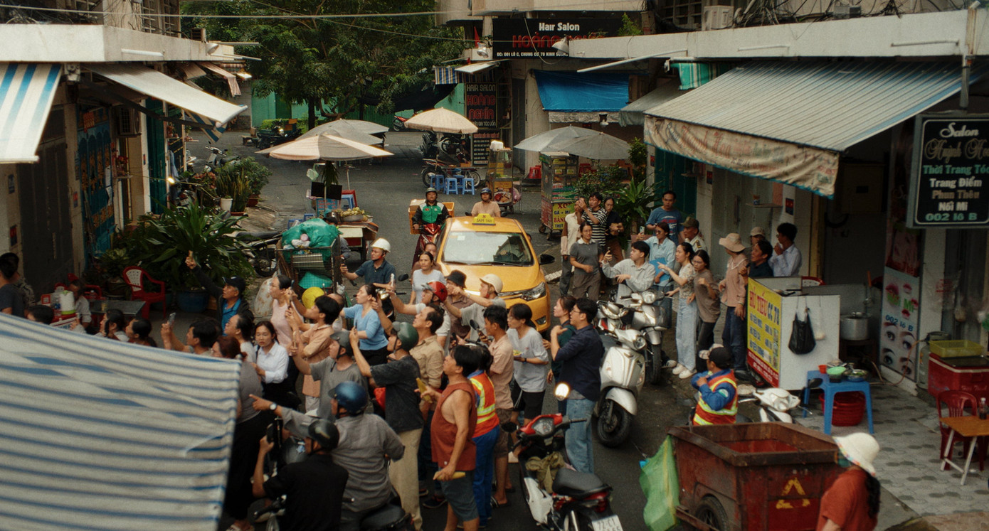 Hình ảnh đầu tiên của phim gây ấn tượng với Thái Hòa trong vai Hùng. Anh là một tài xế taxi đang bị bao vây bởi đám đông và một “khu rừng” toàn cánh tay giơ cao điện thoại như một phiên tòa phán xét giữa đường phố. Thái Hòa chỉ xuất hiện trong bộ dạng một người đàn ông đời thường đang bàng hoàng đối diện một khoảnh khắc lật mặt.