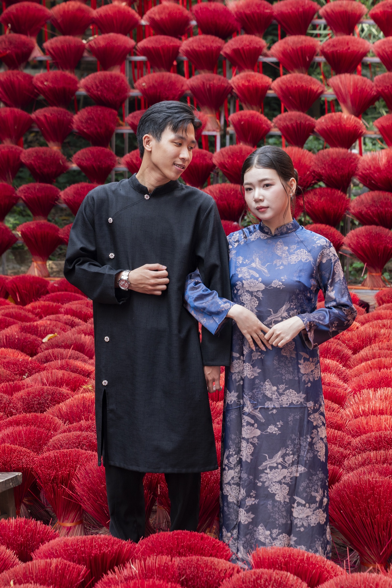 Đỗ Uyên (phường Tân Phú) dành trọn buổi sáng đưa bạn trai Isaac (Singapore) dạo quanh các quán cà phê trang trí Tết để chụp bộ ảnh áo dài đầu tiên trong đời anh. Với Uyên, đó là cách tự nhiên nhất để "dẫn lối" bạn trai vào văn hóa Việt trong gần 2 tháng anh ở TP.HCM. Lần đầu diện áo dài, Isaac cười tươi: "Tôi thấy mình trông rất Việt Nam và khá đẹp trai nữa". Anh đặc biệt ấn tượng với gam màu rực rỡ của bộ trang phục vừa chọn. Trong một năm qua, Isaac đã trở lại TP.HCM hơn 6 lần vì "trót yêu" thành phố này - và cả một người con gái nơi đây.