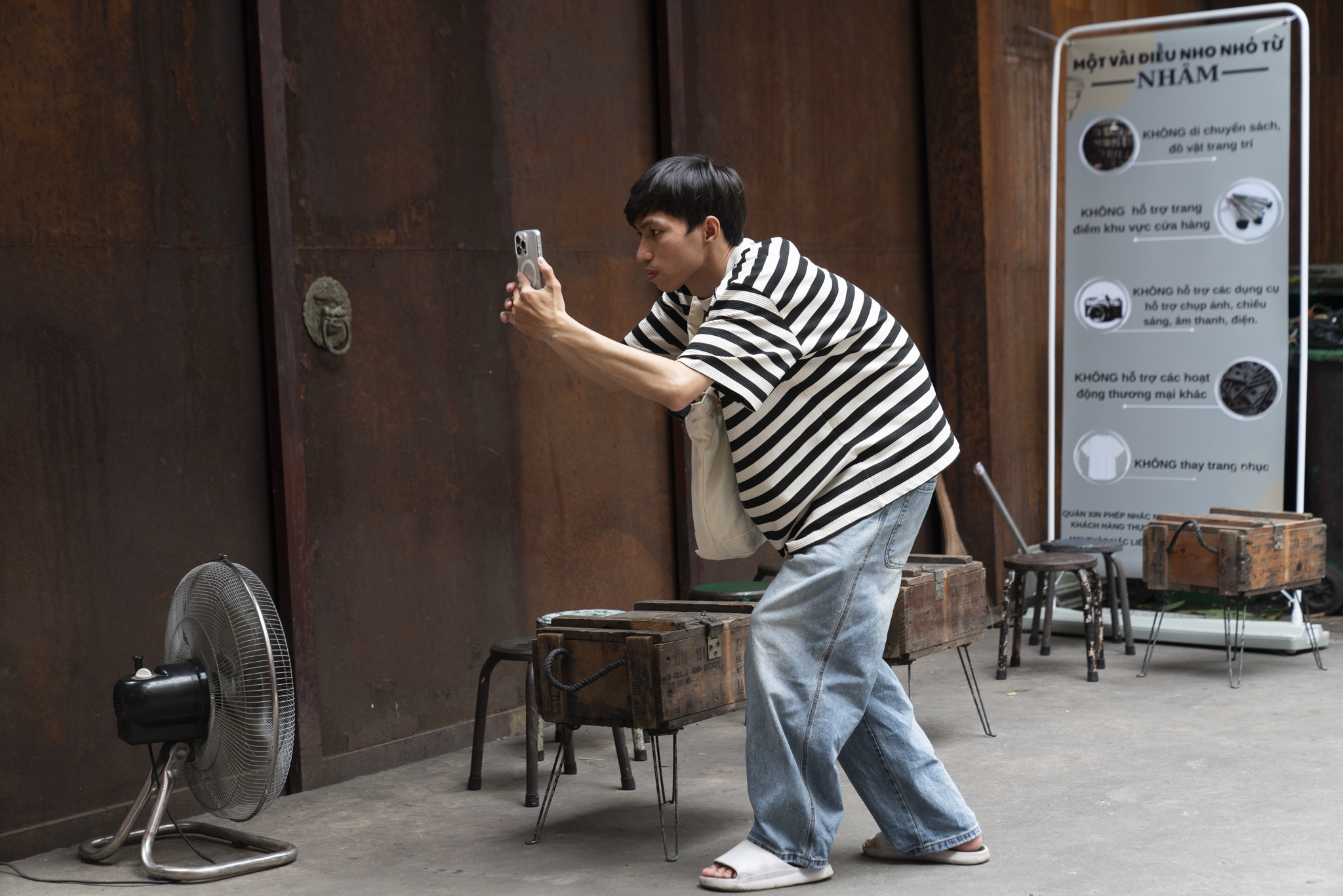 Để giữ gìn cảnh quan, quán bố trí hơn 10 nhân viên vừa trực canh tránh khách làm hư hại bài trí, vừa hỗ trợ khách quay chụp. Nhân viên được hướng dẫn sẵn các góc đẹp để chỉ khách và sau mỗi buổi đông người lại phải chỉnh sửa, sắp xếp lại đồ vật sau khi khách xê dịch. Quán không phụ thu khi khách mang máy ảnh chuyên nghiệp hay quay MV. Tuy nhiên, nếu sử dụng thiết bị tiêu tốn nhiều điện như bàn ủi, máy sấy, đèn công suất lớn, quán sẽ thu thêm 50.000 đồng/người.