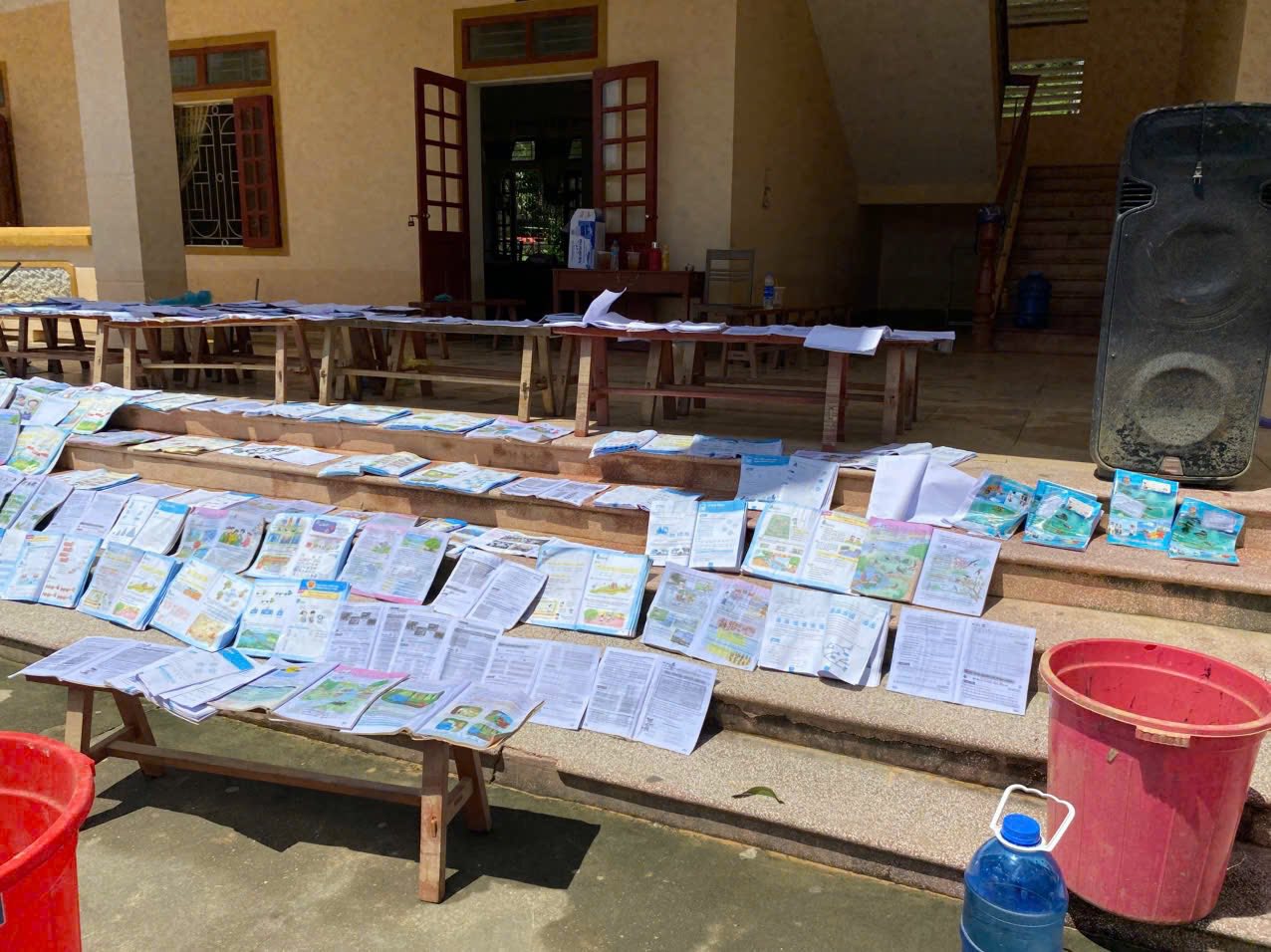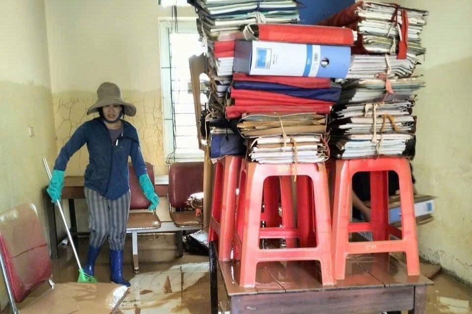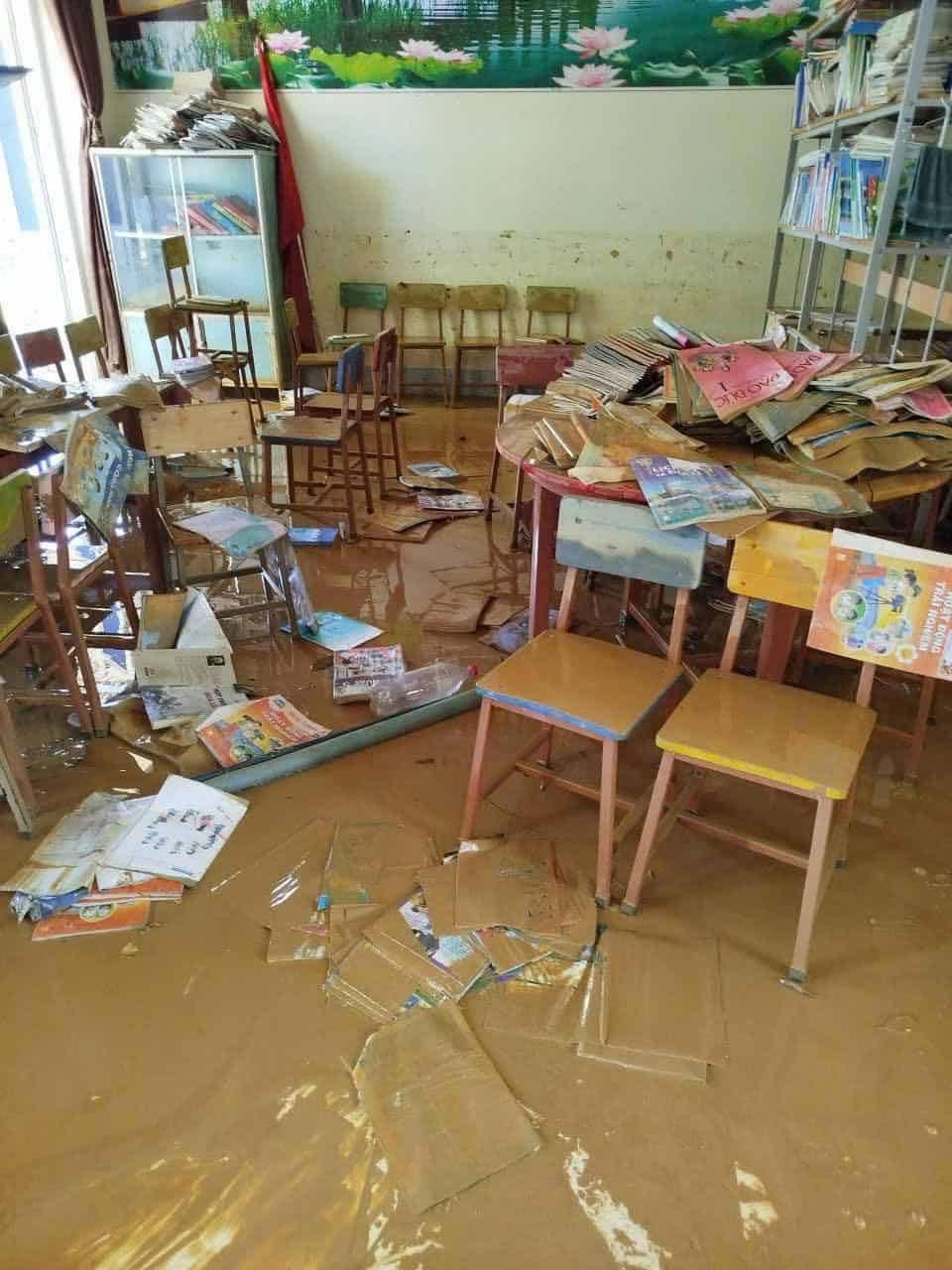 Một số trường học thuộc xã Thành Bình Thọ, tỉnh Nghệ An bị ngập, hư hết sách vở và bàn học của học sinh... Các thầy cô đã nỗ lực cứu dụng cụ học tập và sách vở của các em học sinh.