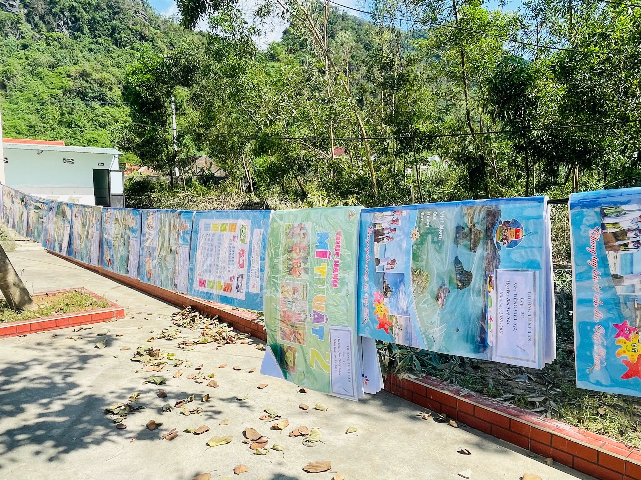 Nước rút, các thầy cô trường Tiểu học Tân Kỳ, tỉnh Nghệ An trở lại trường dọn dẹp sau lũ. Sân trường, bậc thềm trở thành nơi phơi từng trang vở, cuốn sách ướt sũng bùn đất. Những cuốn sách bị ngâm nước nhiều ngày được các giáo viên mang ra sân phơi để hong khô với mong muốn các em học sinh vẫn có thể dùng được.