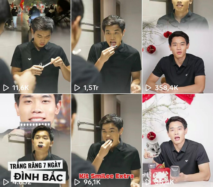 Không dừng lại ở đó, Đình Bắc còn tham gia quảng bá cho một thương hiệu kit làm trắng răng. Video quảng bá cho dòng sản phẩm này của nam tiền đạo đã nhanh chóng đạt mốc hàng triệu lượt xem, cho thấy khả năng tác động mạnh mẽ đến thói quen tiêu dùng của khán giả.