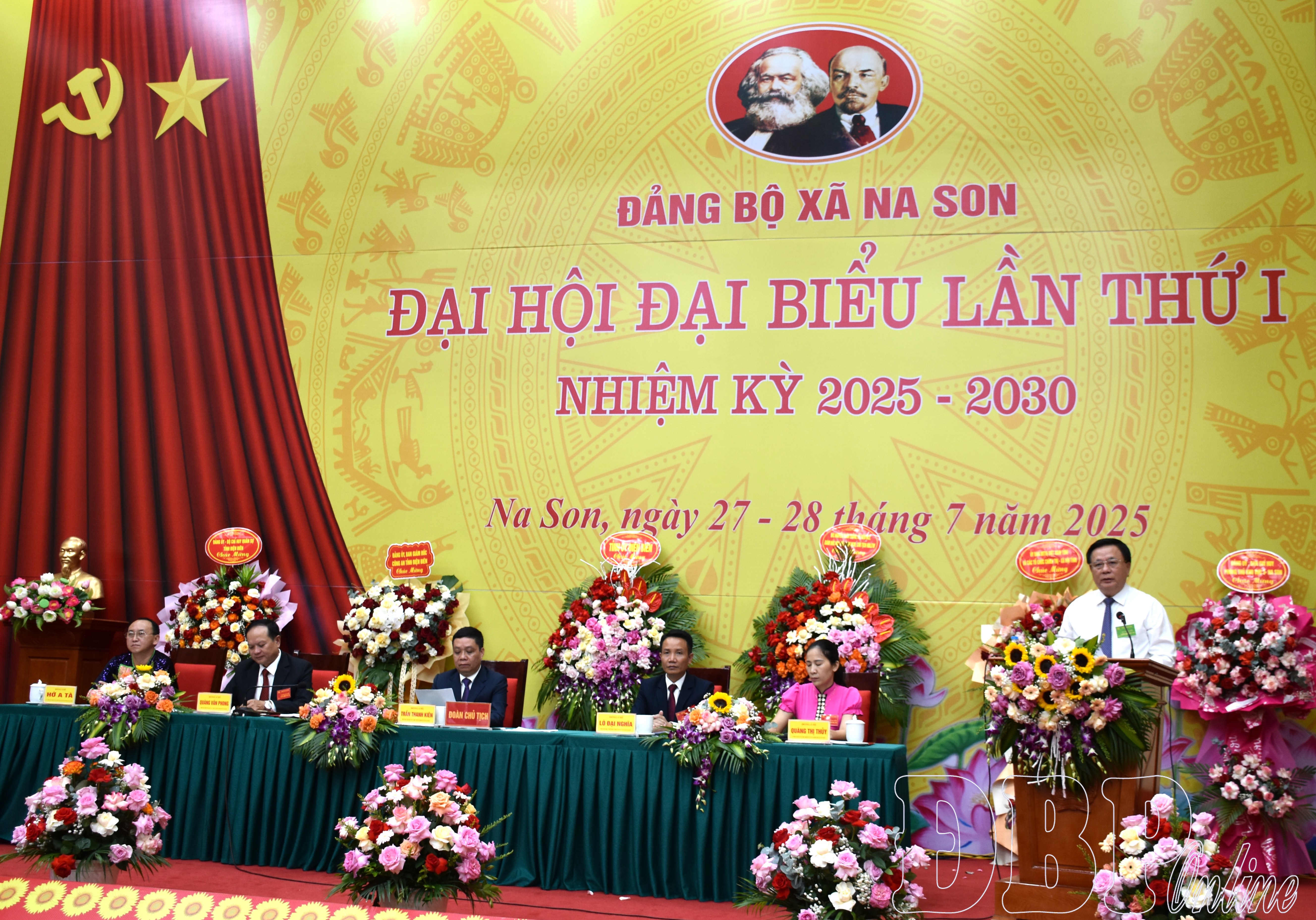 Đồng chí Nguyễn Xuân Thắng, Ủy viên Bộ Chính trị, Giám đốc Học viện Chính trị Quốc gia Hồ Chí Minh, Chủ tịch Hội đồng Lý luận Trung ương dự, chỉ đạo Đại hội đại biểu Đảng bộ xã Na Son lần thứ I.