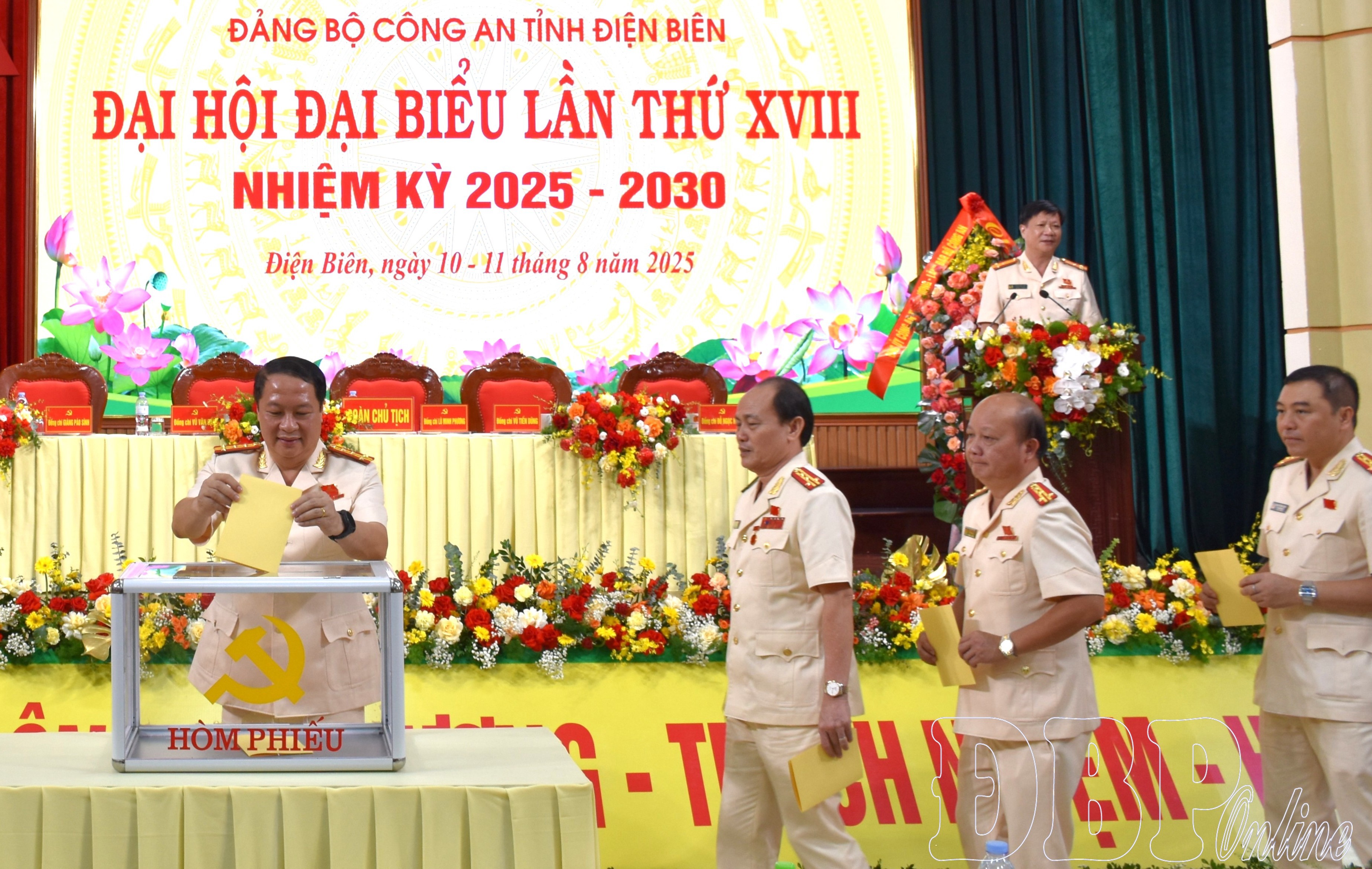 Đại biểu bỏ phiếu bầu Ban Chấp hành Đảng bộ Công an tỉnh lần thứ XVIII, nhiệm kỳ 2025 - 2030.