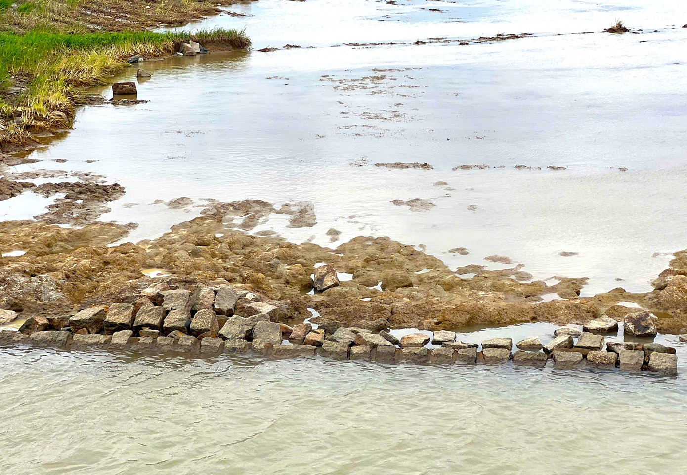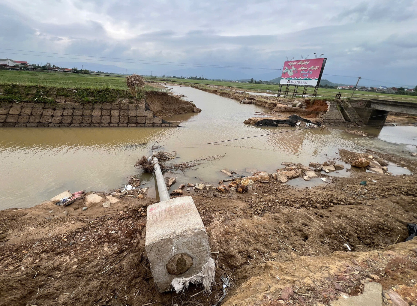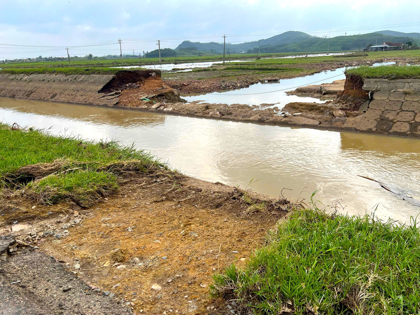 Theo ghi nhận của PV Tiền Phong, có khoảng 30 điểm bị vỡ trên kênh mương xã Tây Hòa.