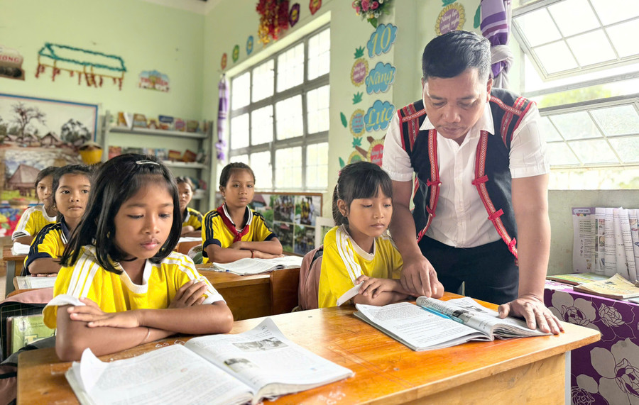 Thầy Khôn còn tận tâm chăm lo học sinh nghèo, chủ động đến từng gia đình, từng rẫy để nắm bắt hoàn cảnh, kịp thời hỗ trợ, động viên các em trở lại lớp.