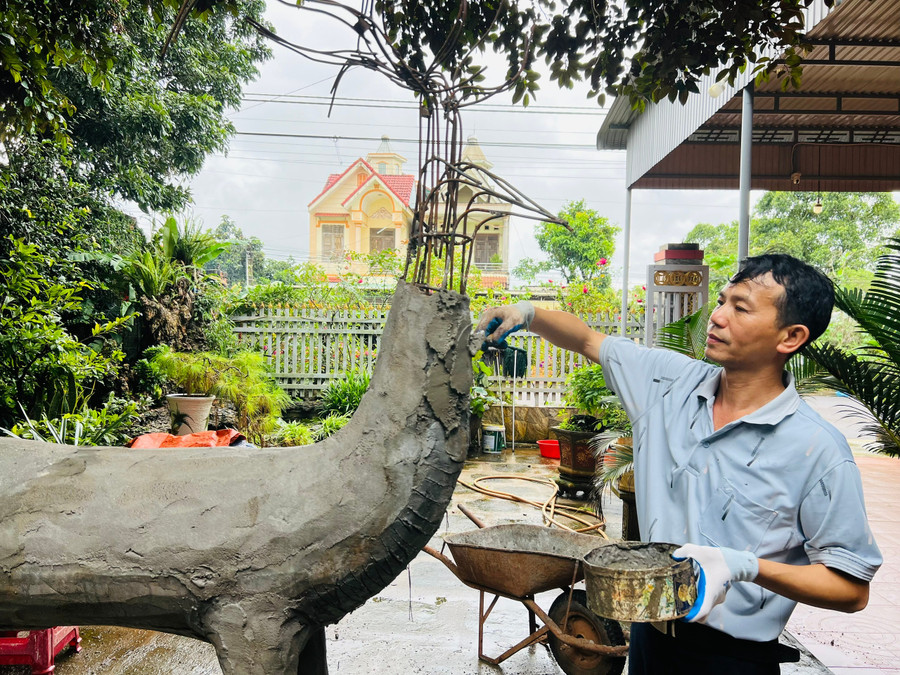 Thầy Nguyễn Văn Xuyền làm tượng động vật bằng xi măng. Ảnh: M.N