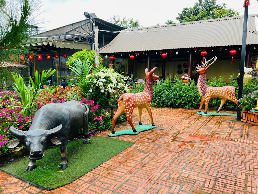 Những động vật làm bằng xi măng tại quán cà phê Ánh Mặt Trời. Ảnh: M.N