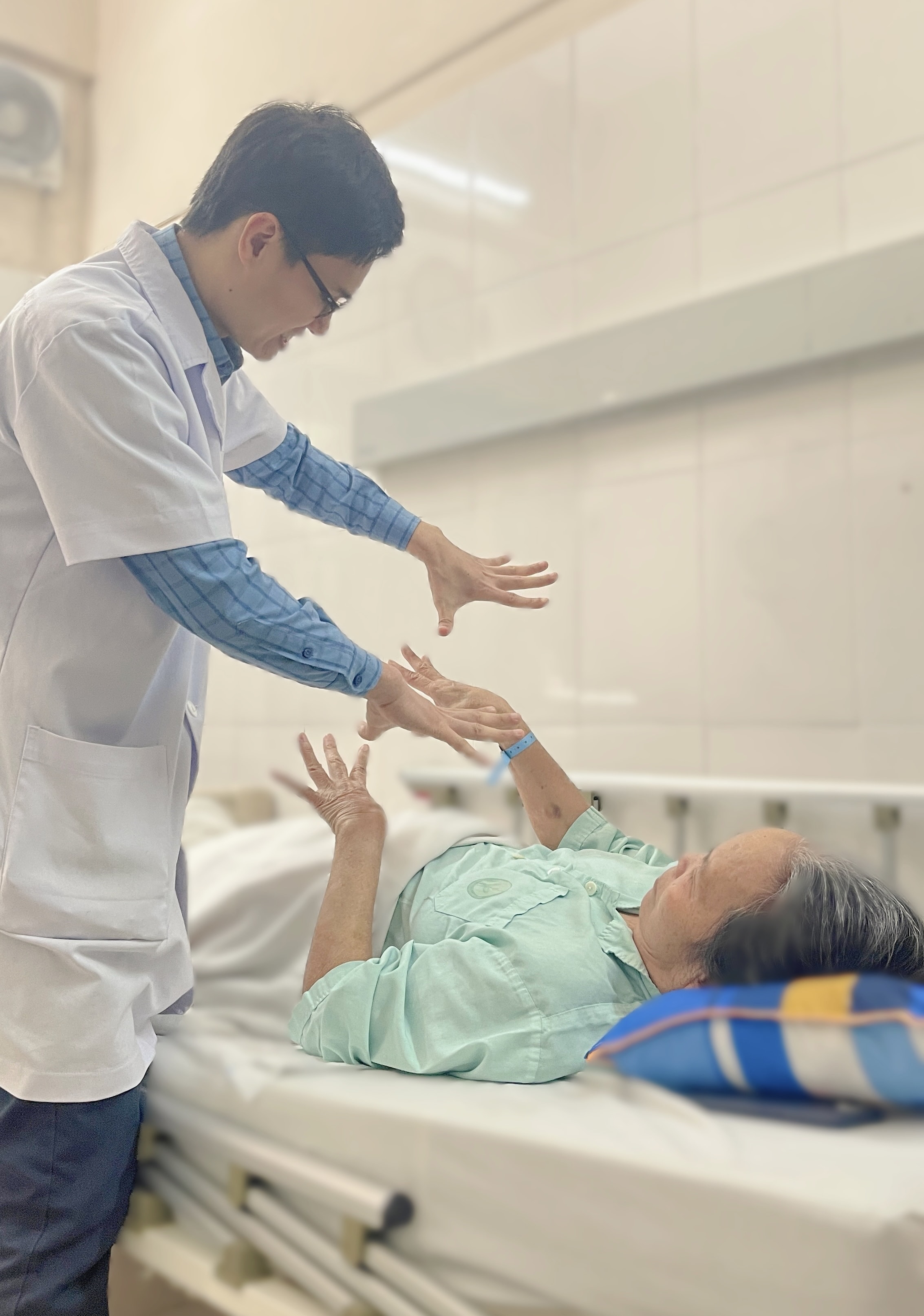 ThS.BS Lê Quốc Việt, Khoa Nội – Hồi sức thần kinh, Bệnh viện Hữu nghị Việt Đức cho biết, qua thăm khám lâm sàng, các bác sĩ ghi nhận bệnh nhân yếu tứ chi, yếu ưu thế gốc chi, kèm rối loạn cảm giác kiểu “đi găng, đi bốt” – gợi ý bệnh cảnh viêm đa rễ và dây thần kinh cấp tính (Hội chứng Guillain-Barré).